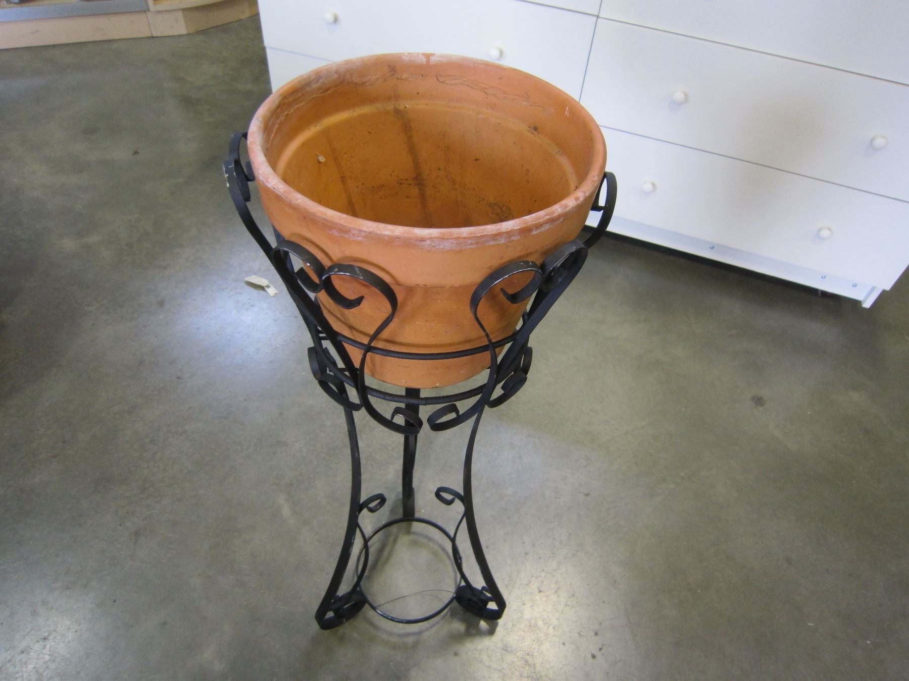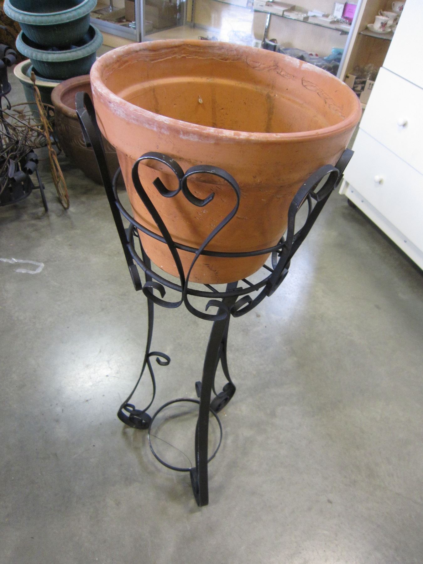 BLACK IRON PLANT STAND W/ TERRACOTTA POT