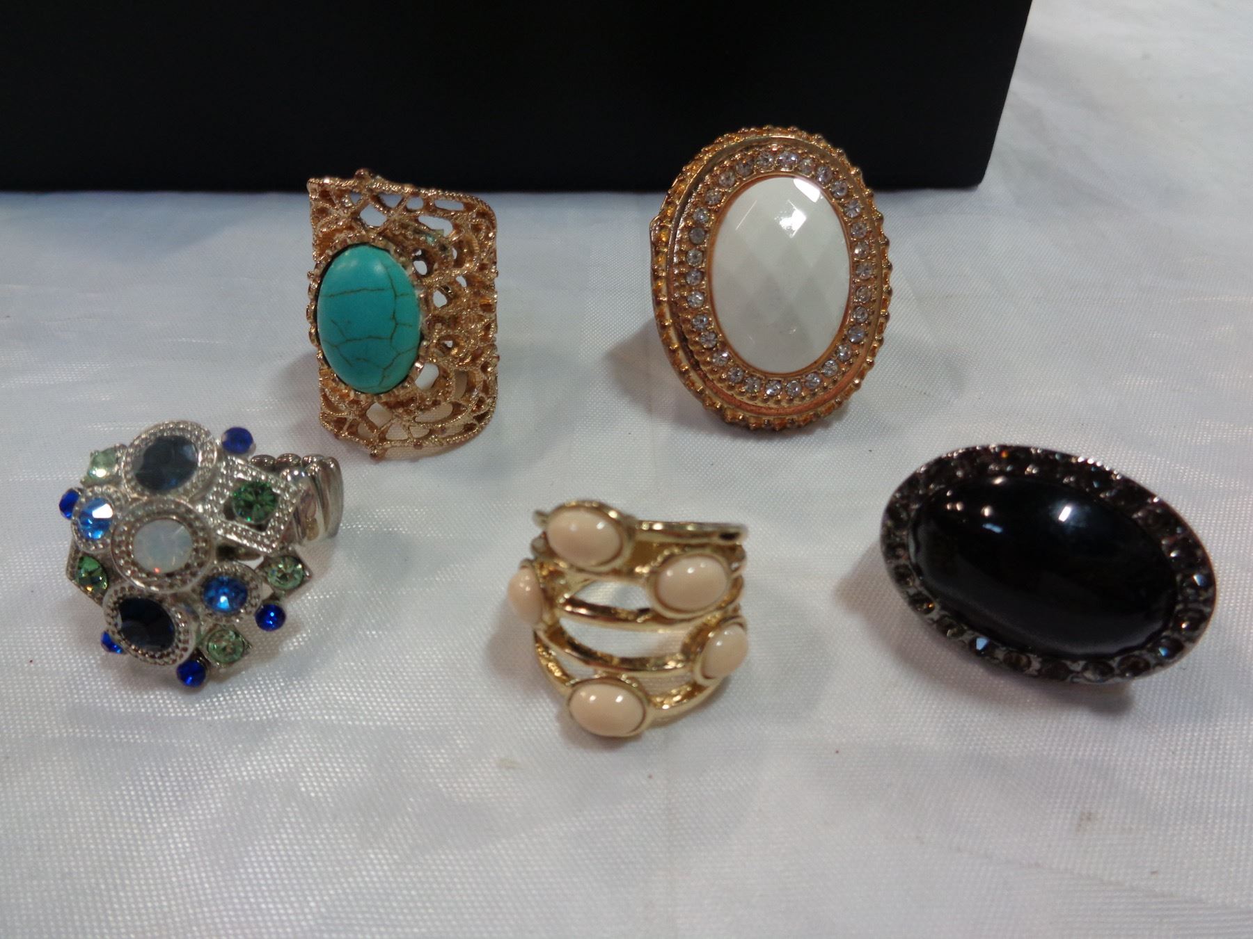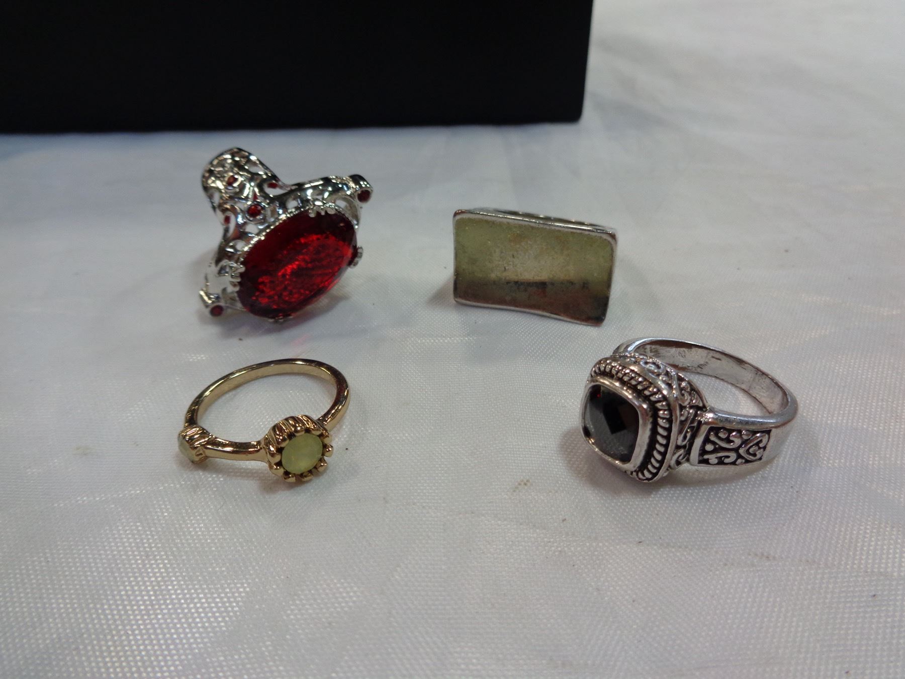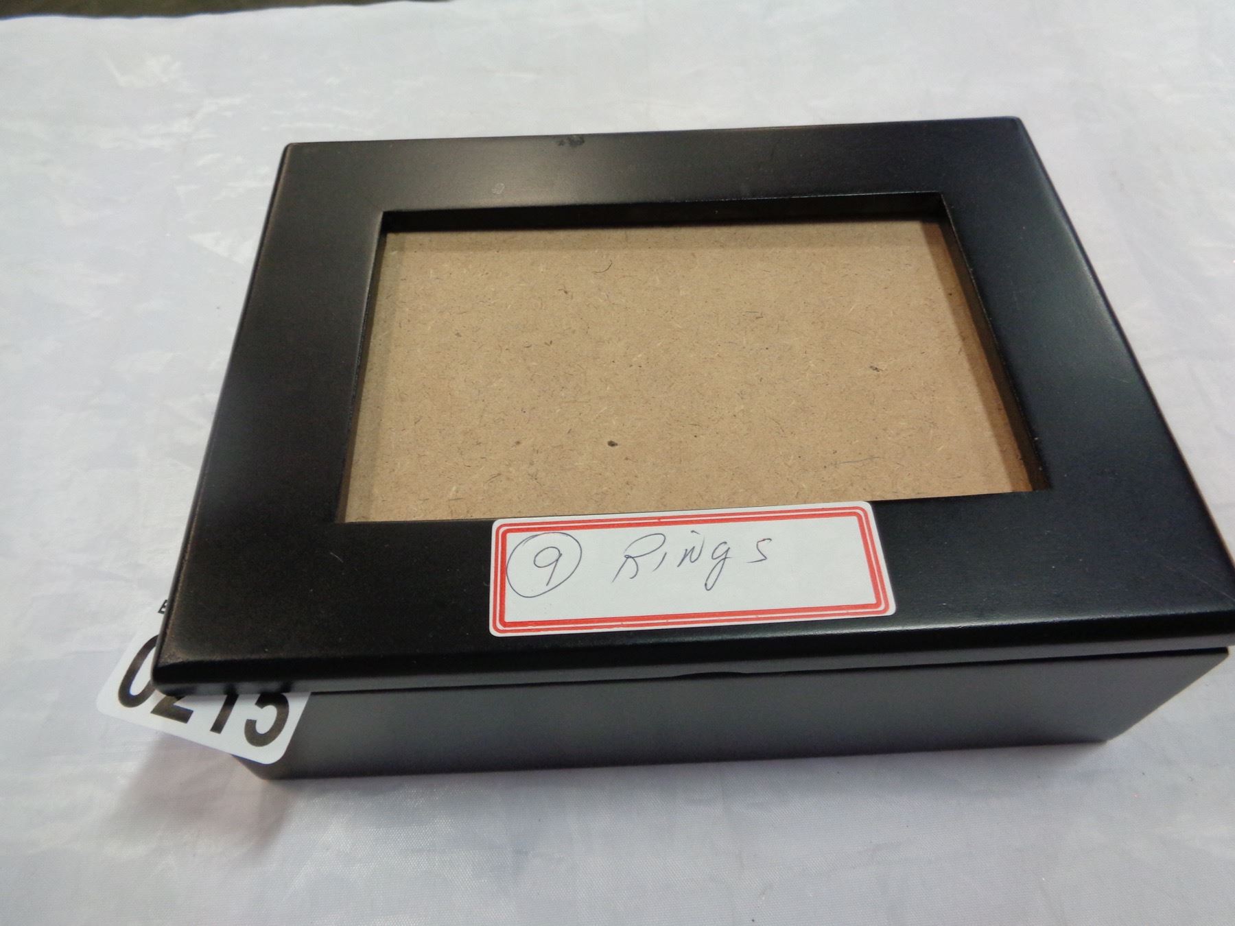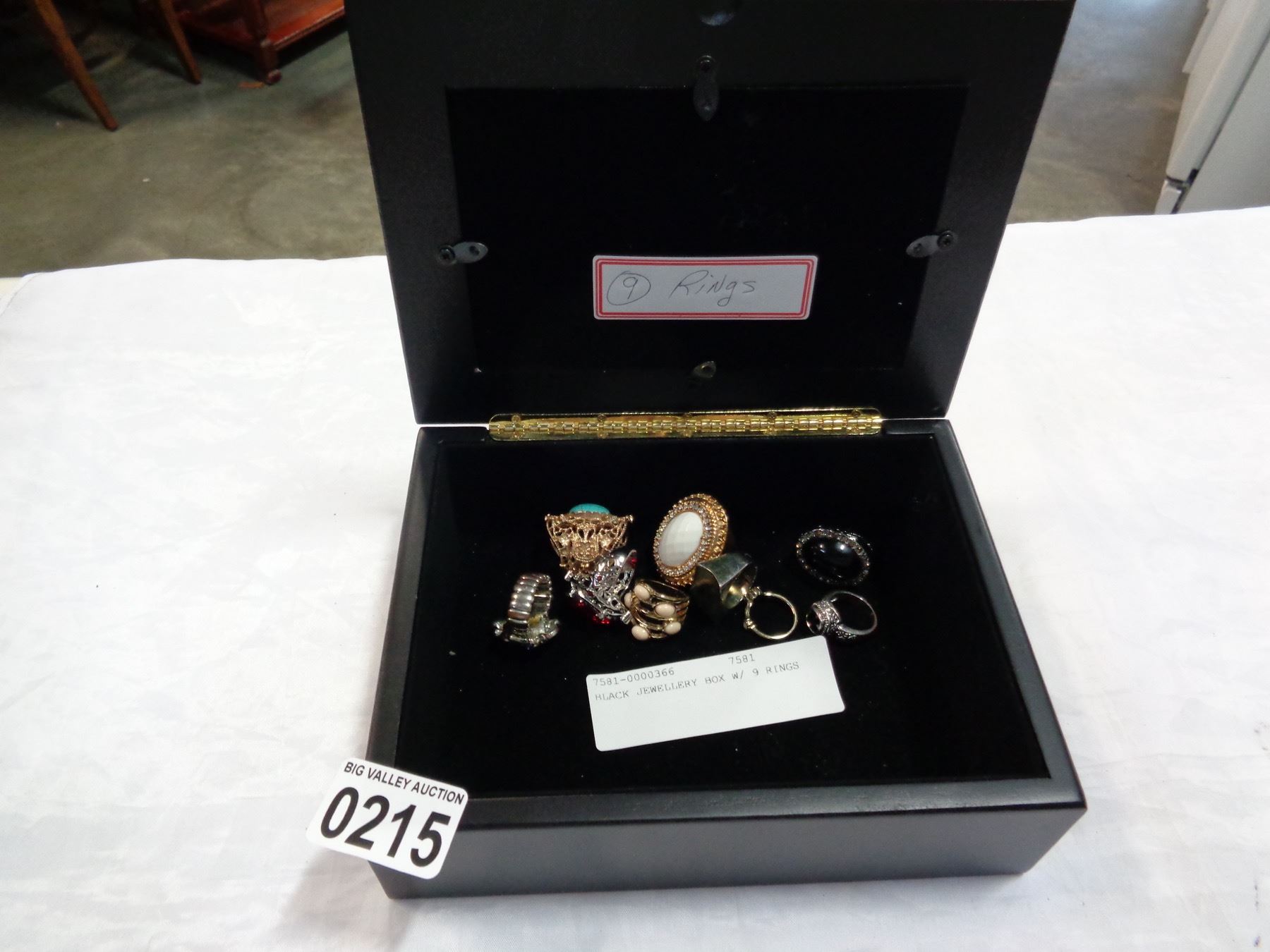 BLACK JEWELLERY BOX W/ 9 RINGS