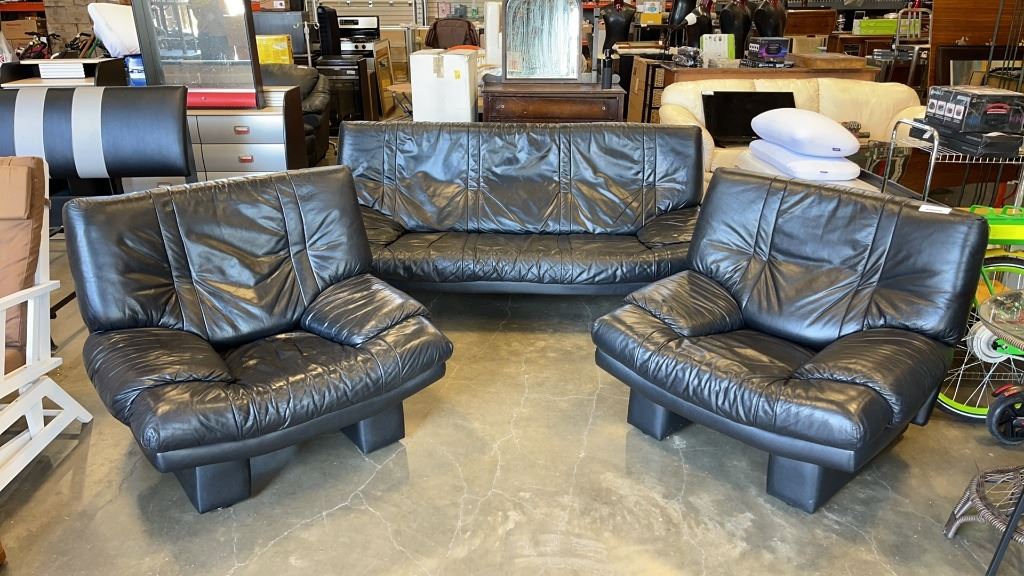 BLACK LEATHER 3 PIECE LIVING ROOM SET