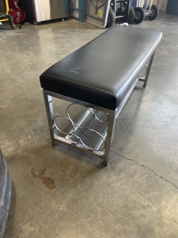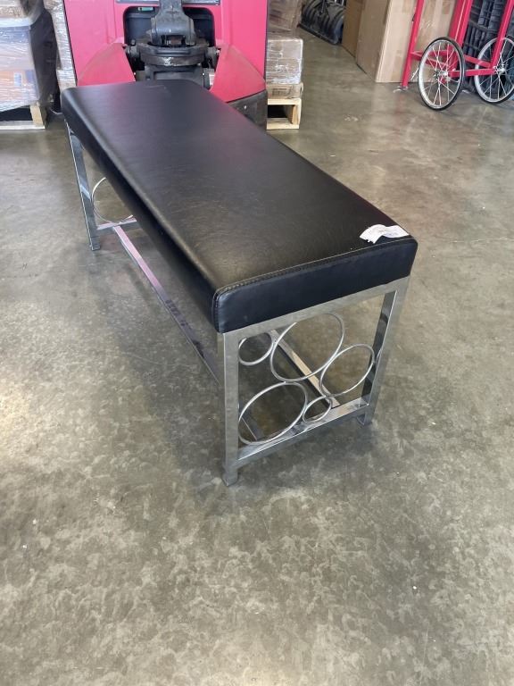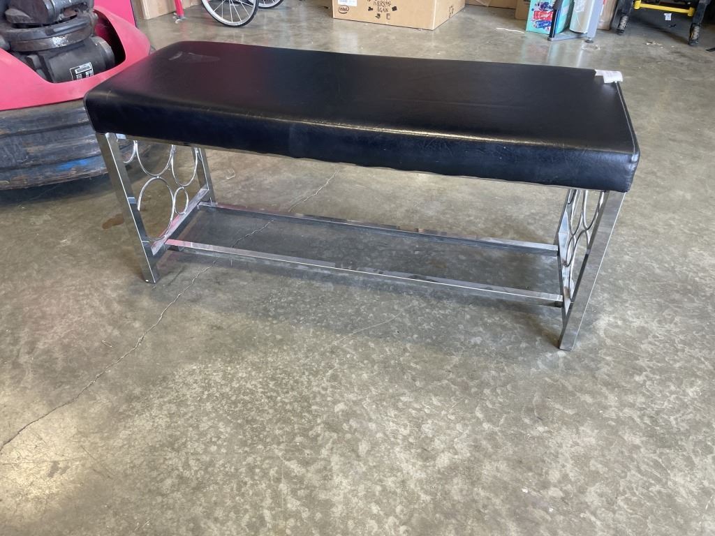 BLACK LEATHER AND CHROME ENTRANCE BENCH