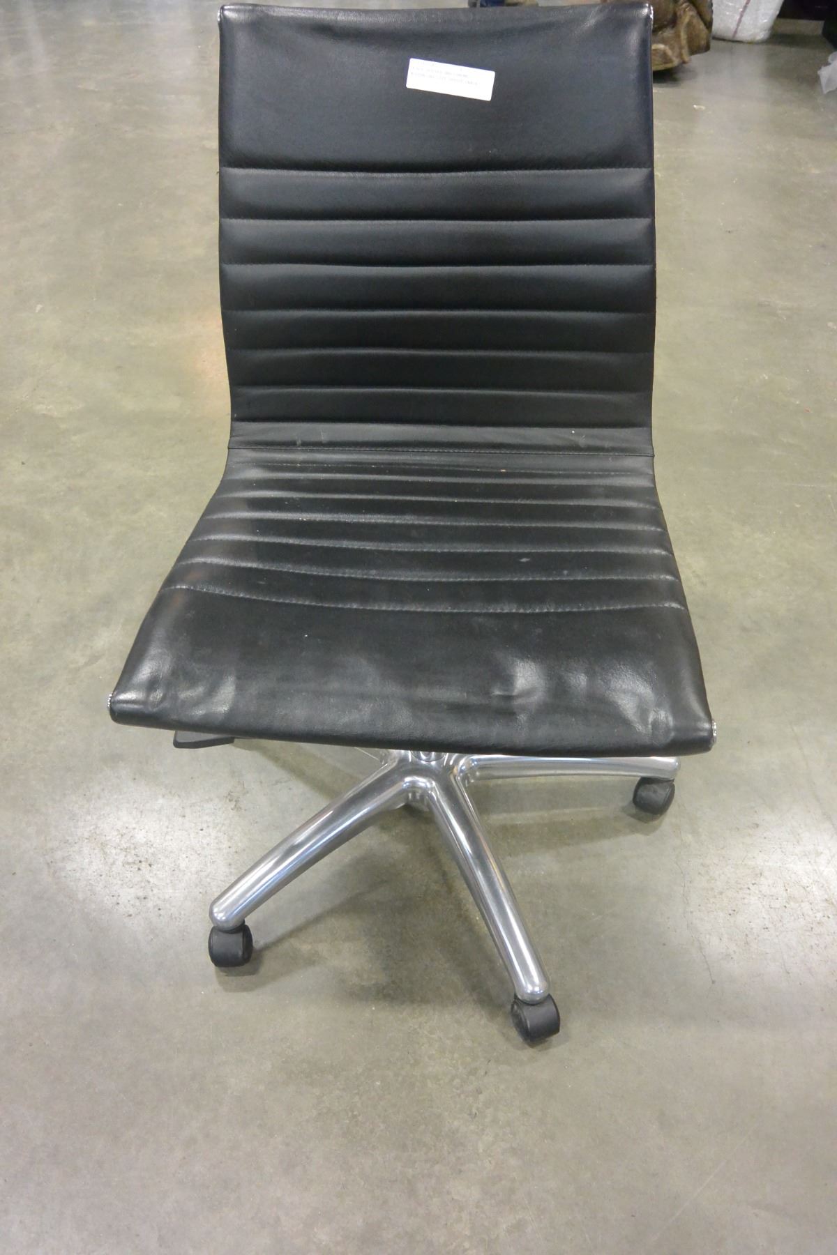 BLACK LEATHER AND CHROME MODERN GAS LIFT OFFICE CHAIR