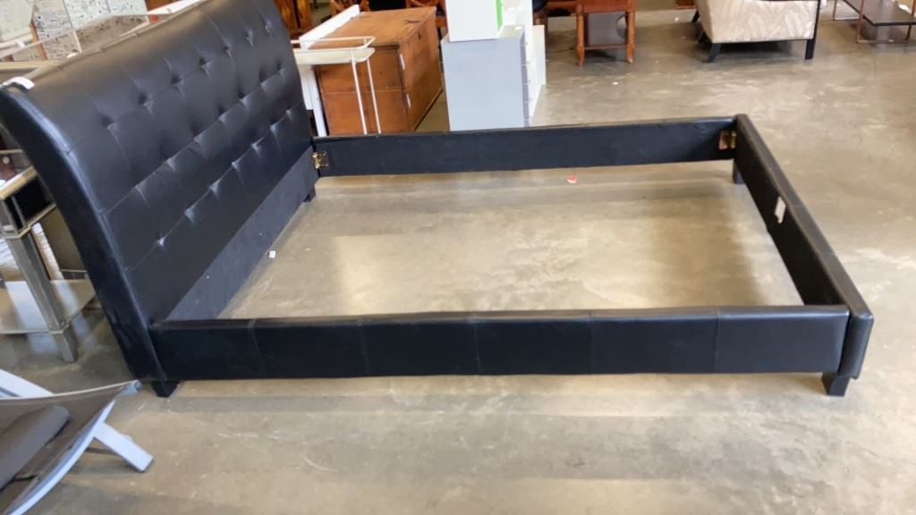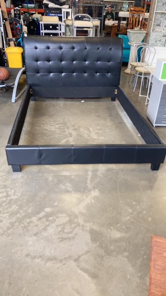 BLACK LEATHER LOOK QUEEN SIZE FRAME ONLY