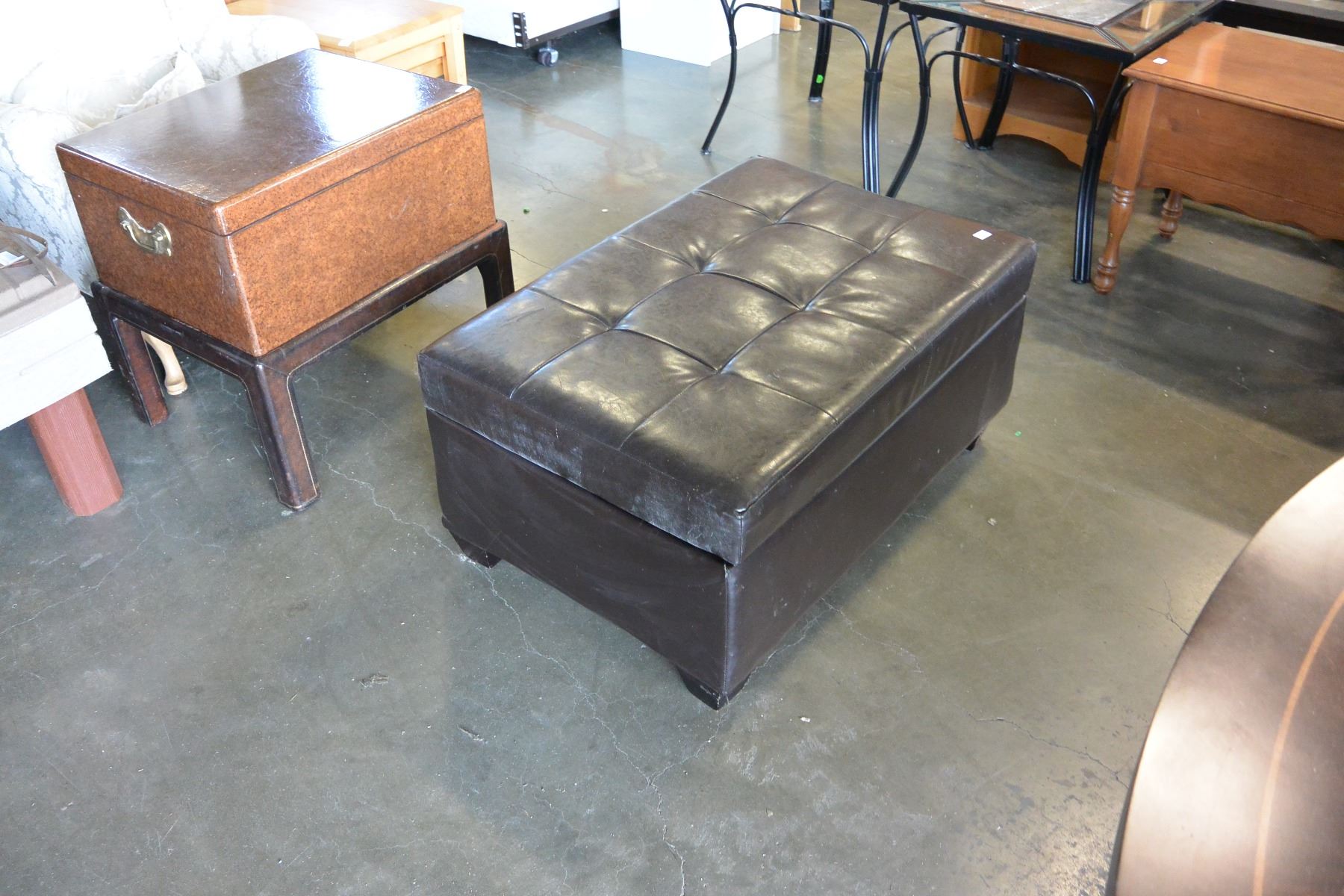 BLACK LEATHER OTTOMAN WITH STORAGE