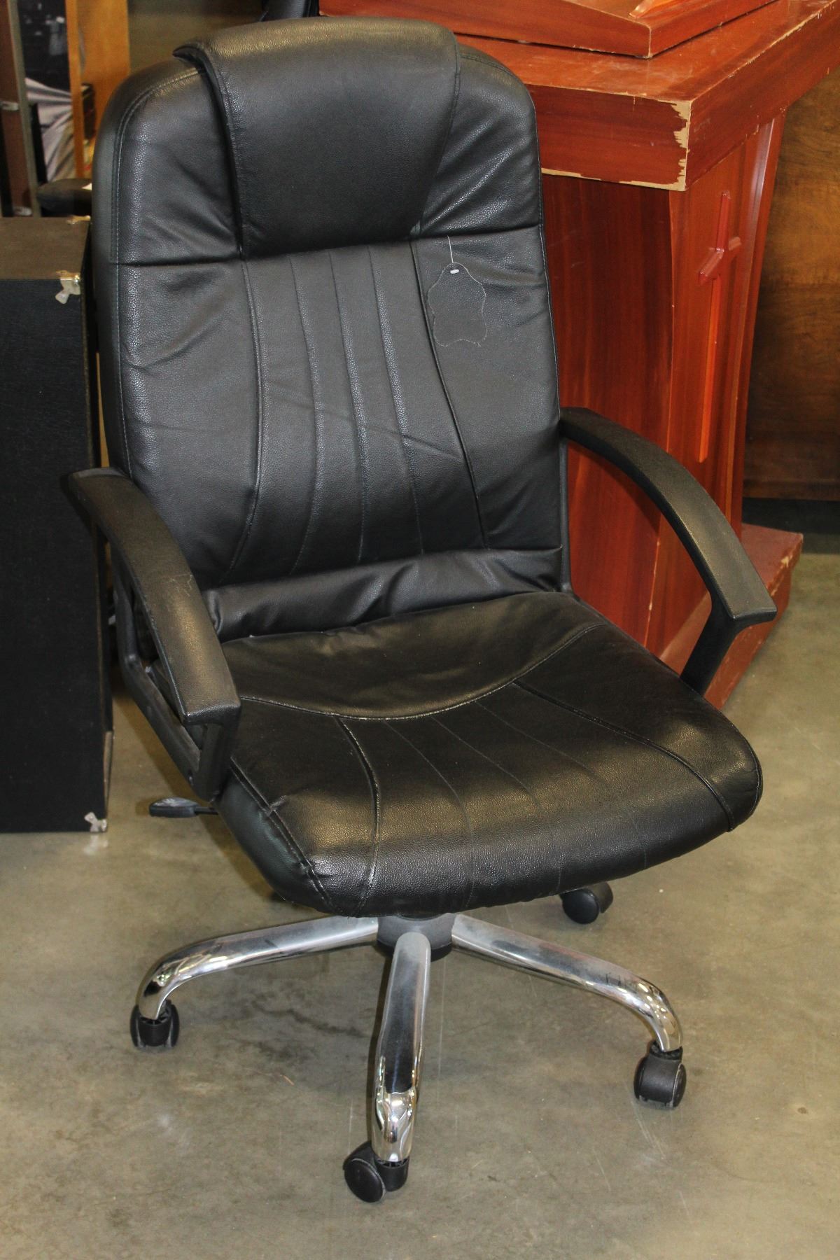 BLACK LEATHER ROLLING OFFICE CHAIR
