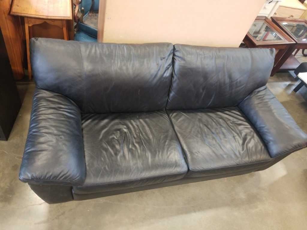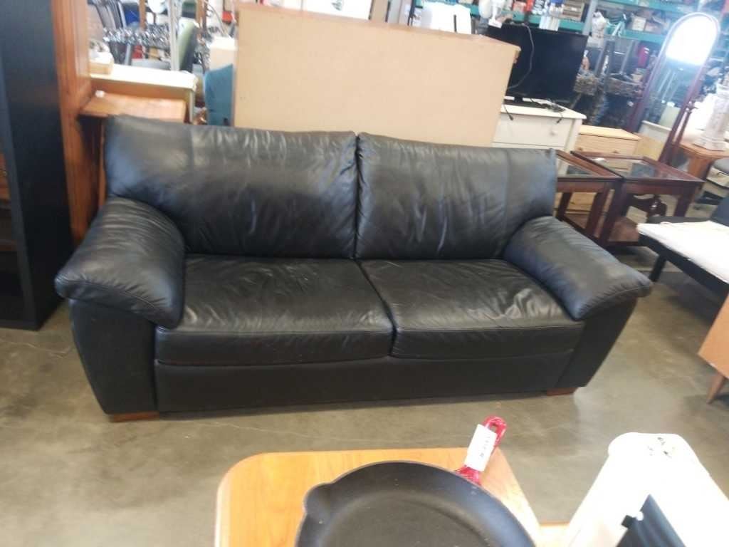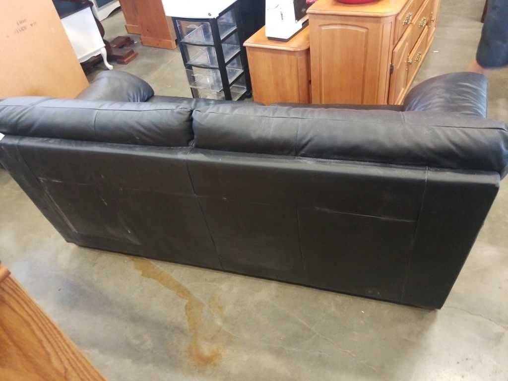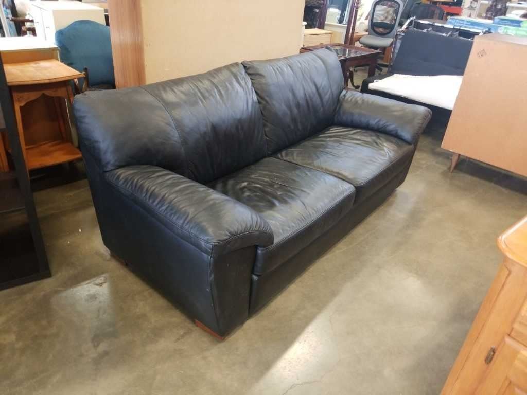 BLACK LEATHER SOFA - 82 INCHES WIDE X 39 DEEP