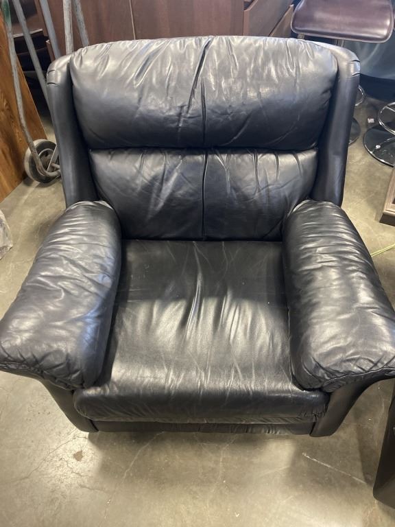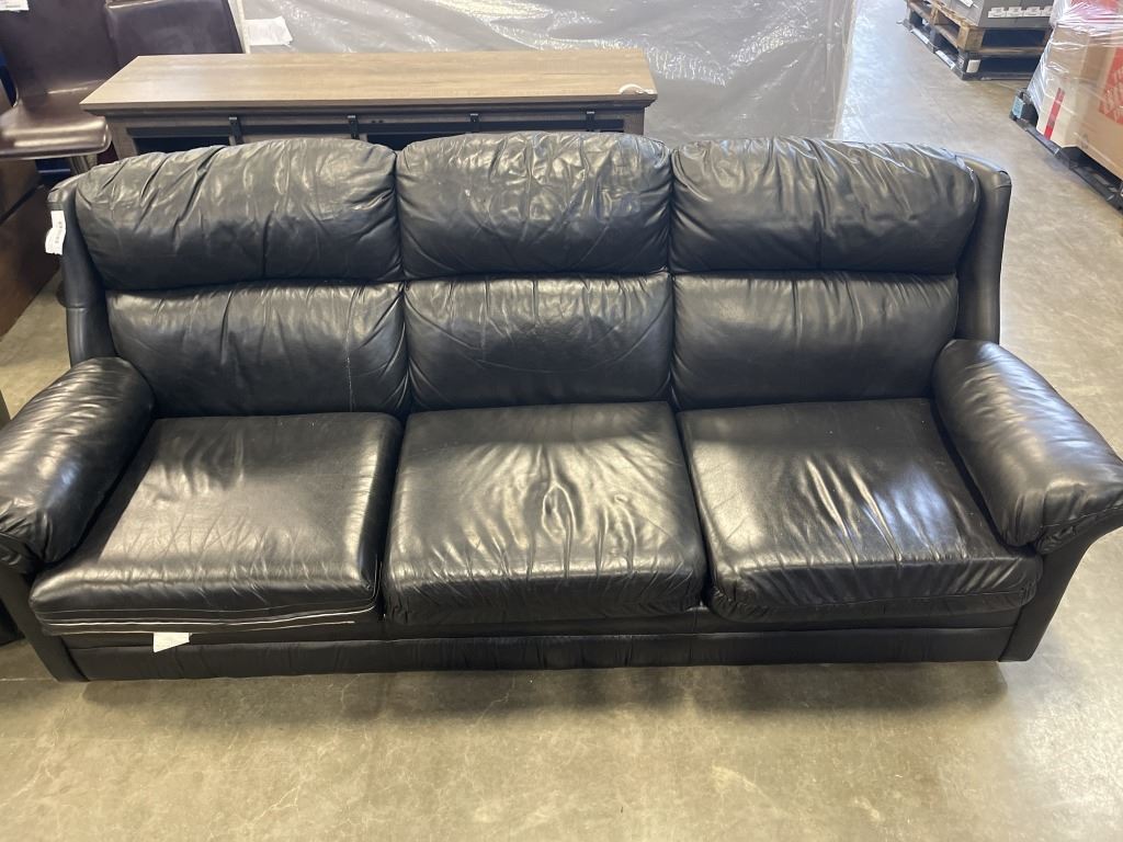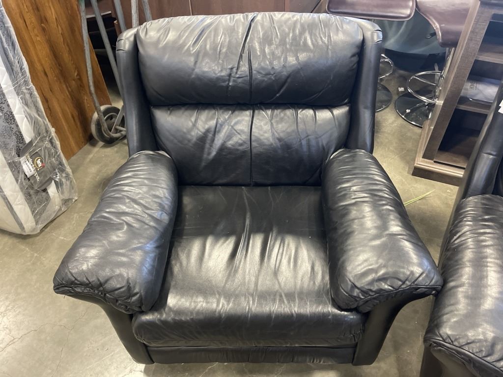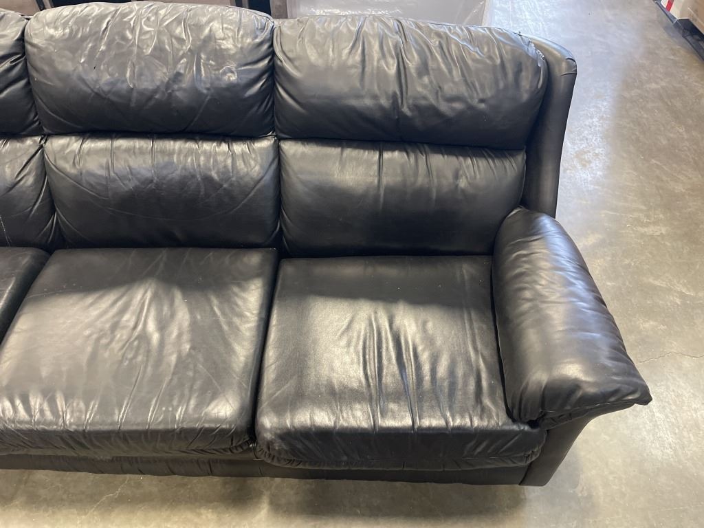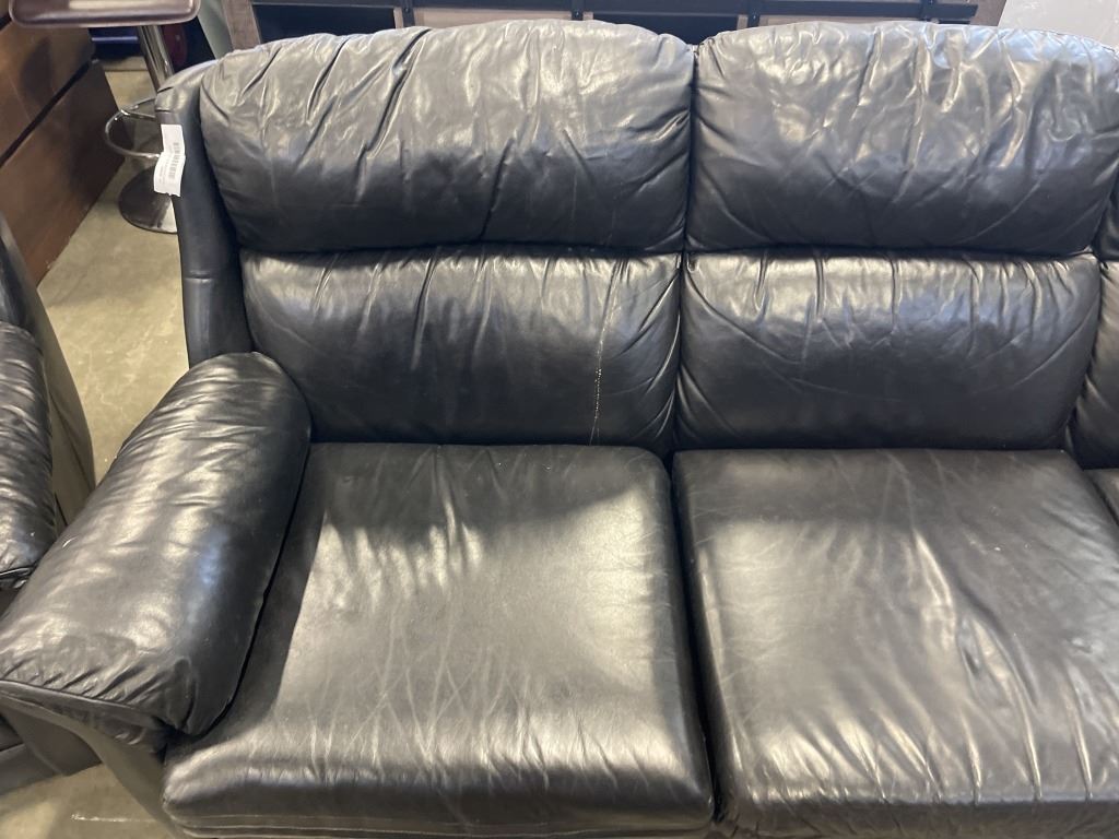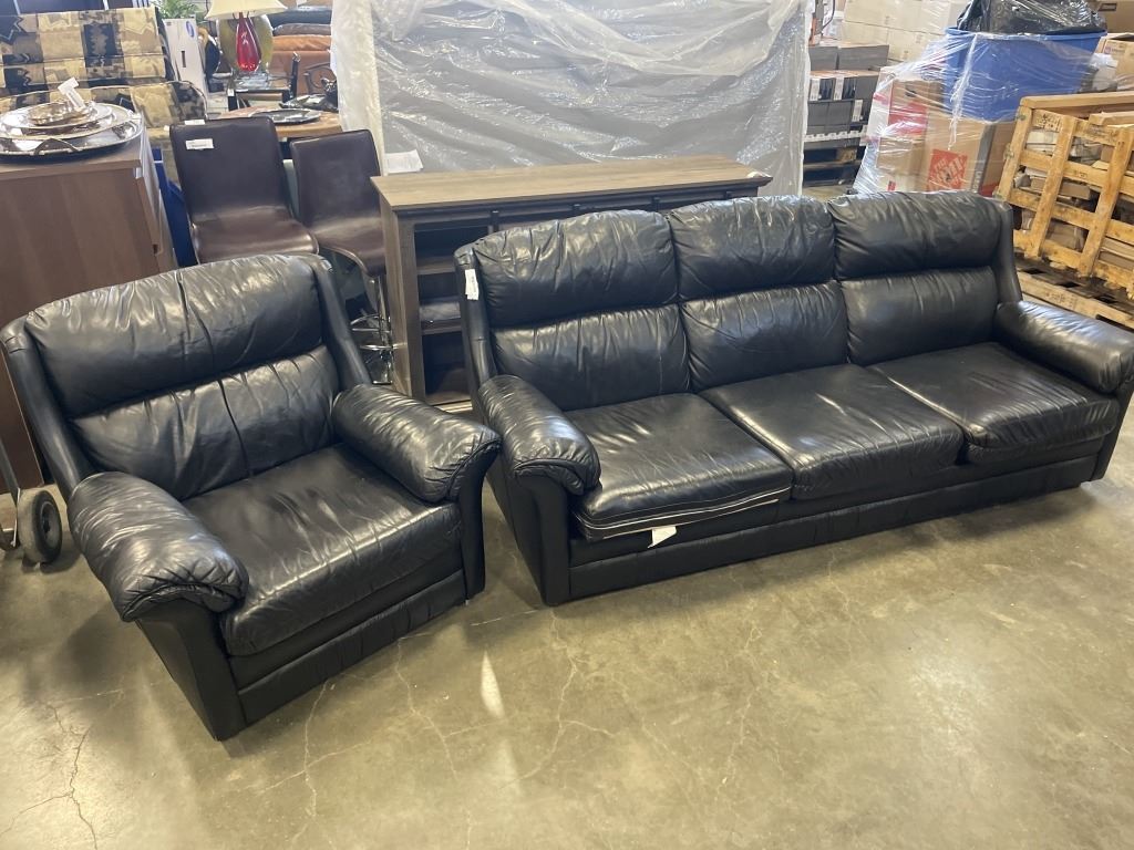 BLACK LEATHER SOFA AND CHAIR