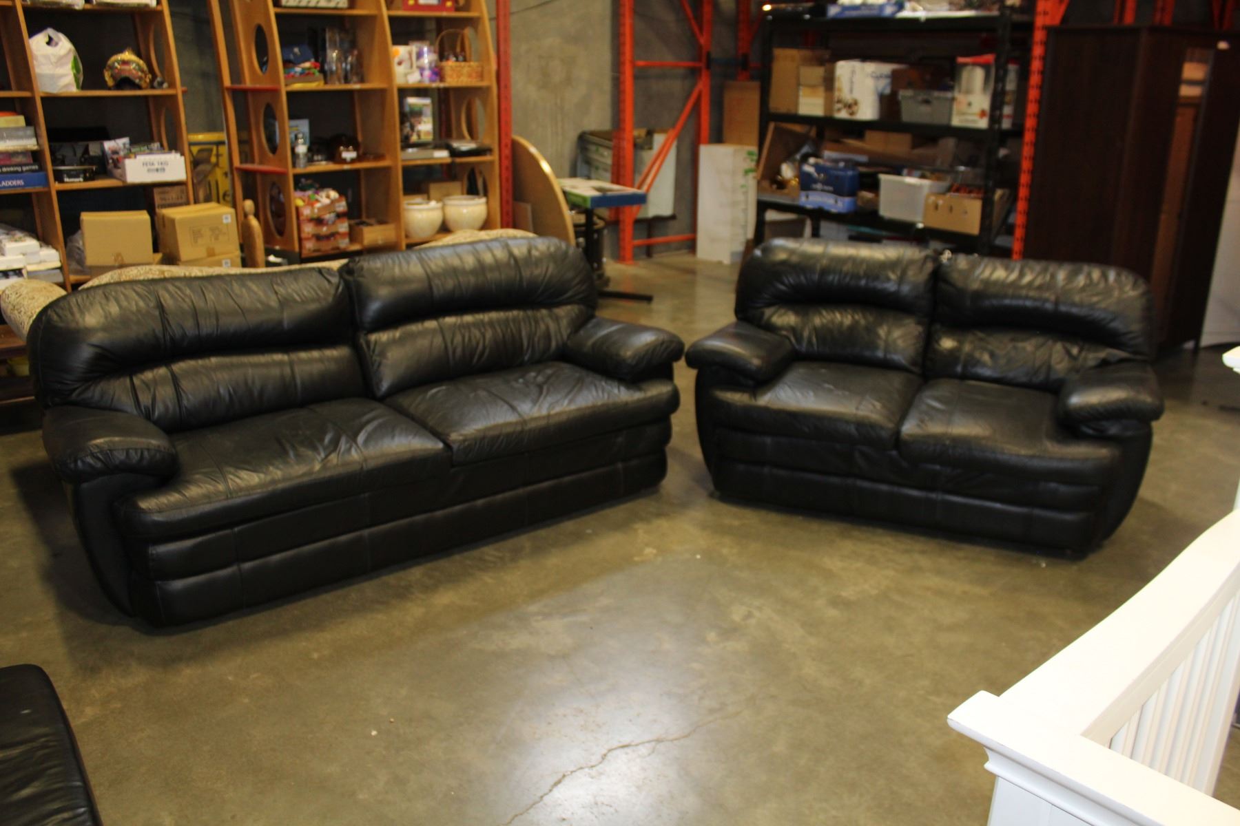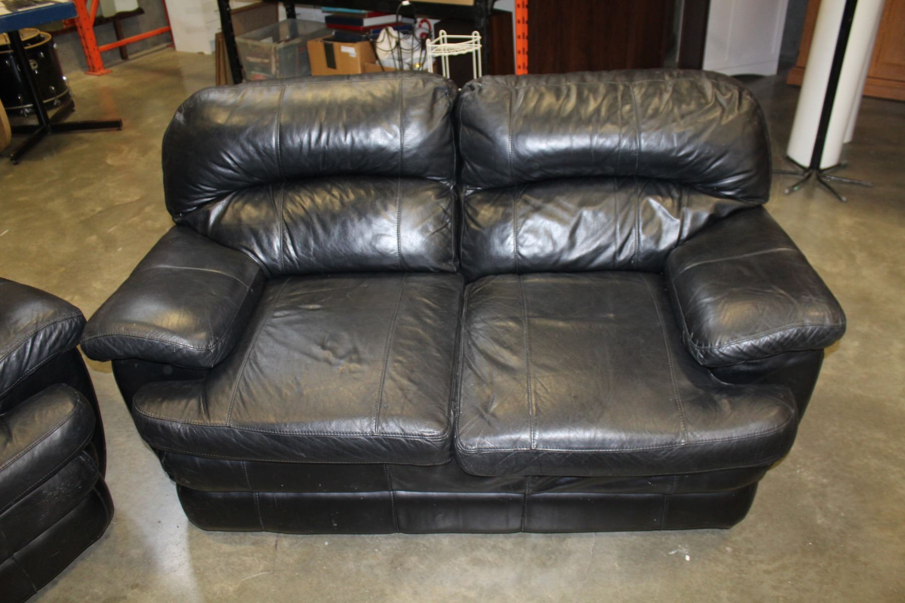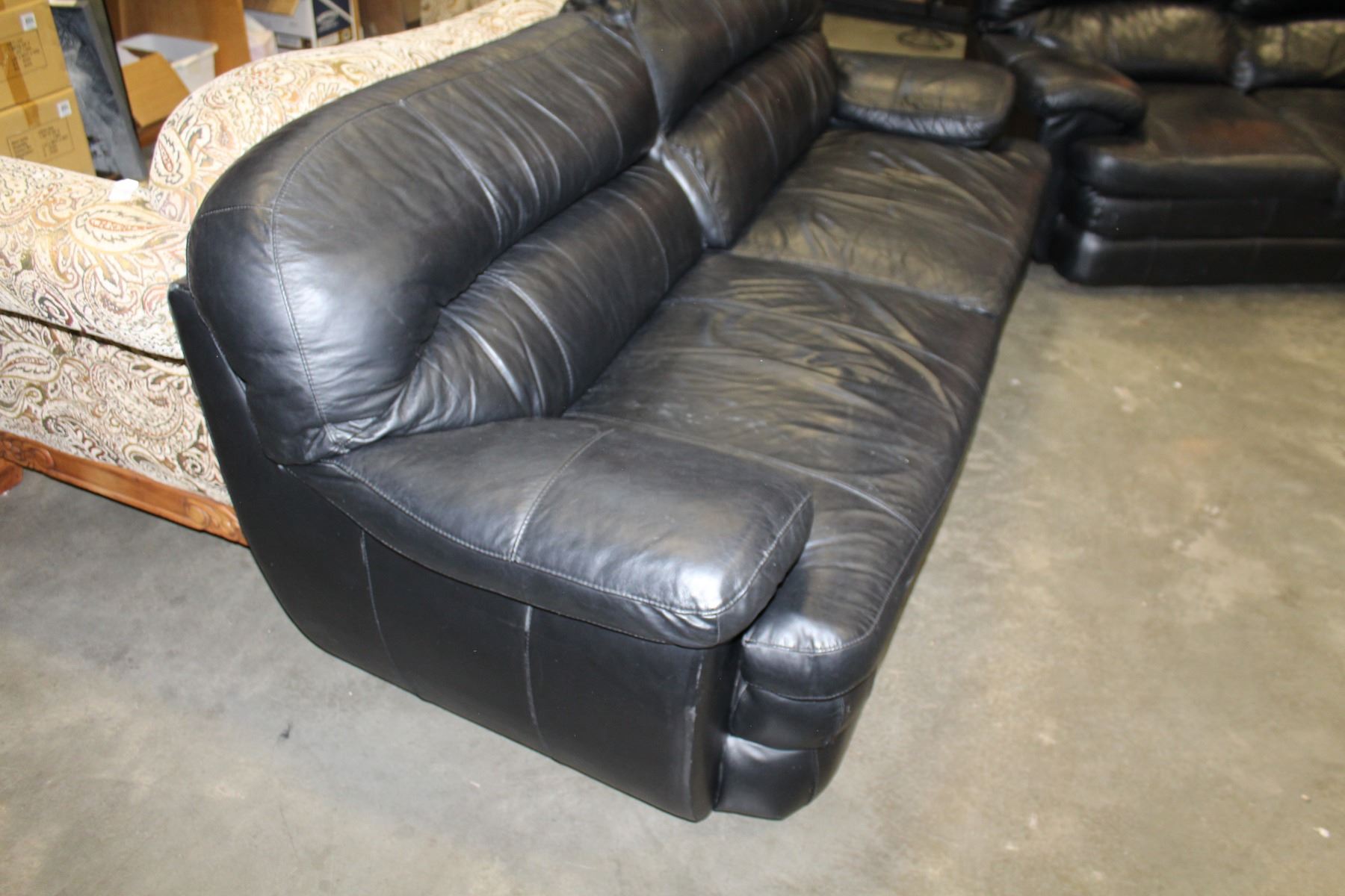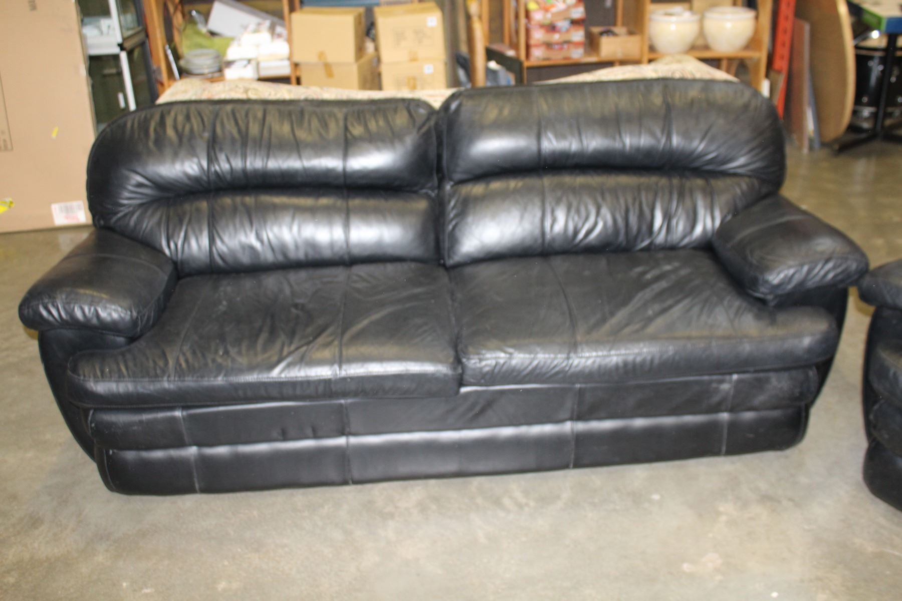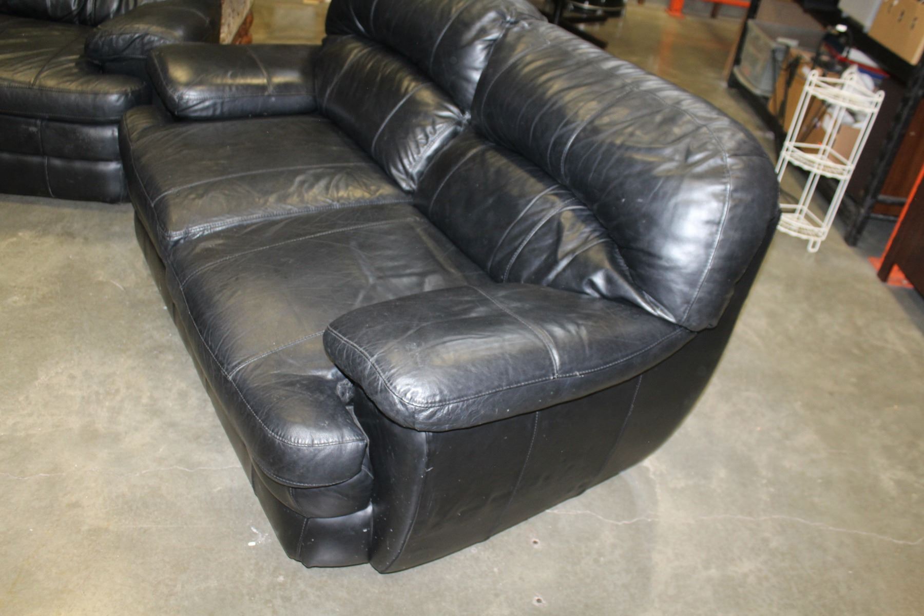 BLACK LEATHER SOFA AND LOVE SEAT