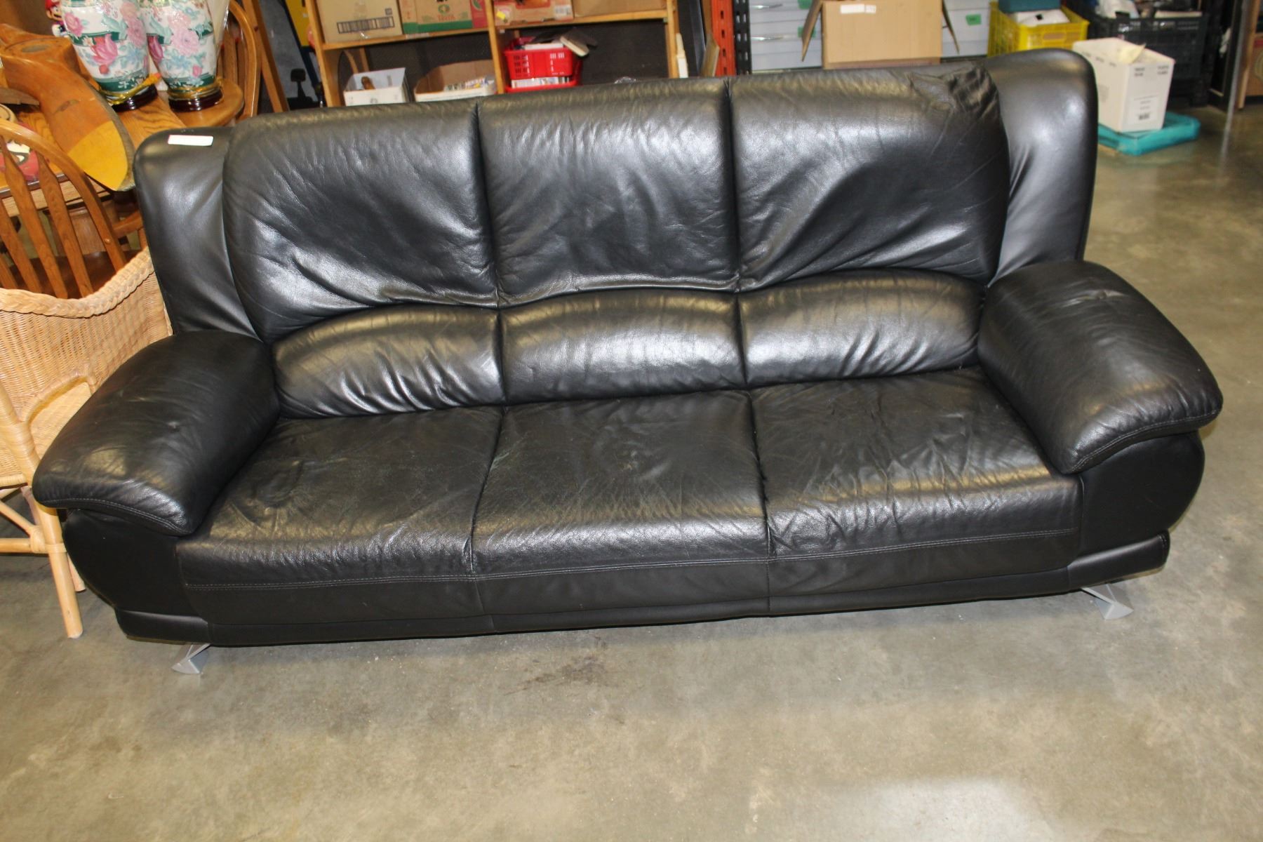 BLACK LEATHER SOFA WITH CHROME LEGS