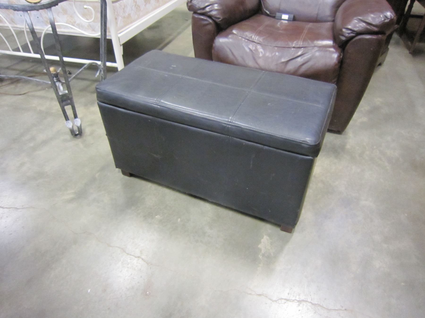BLACK LEATHER STORAGE BENCH