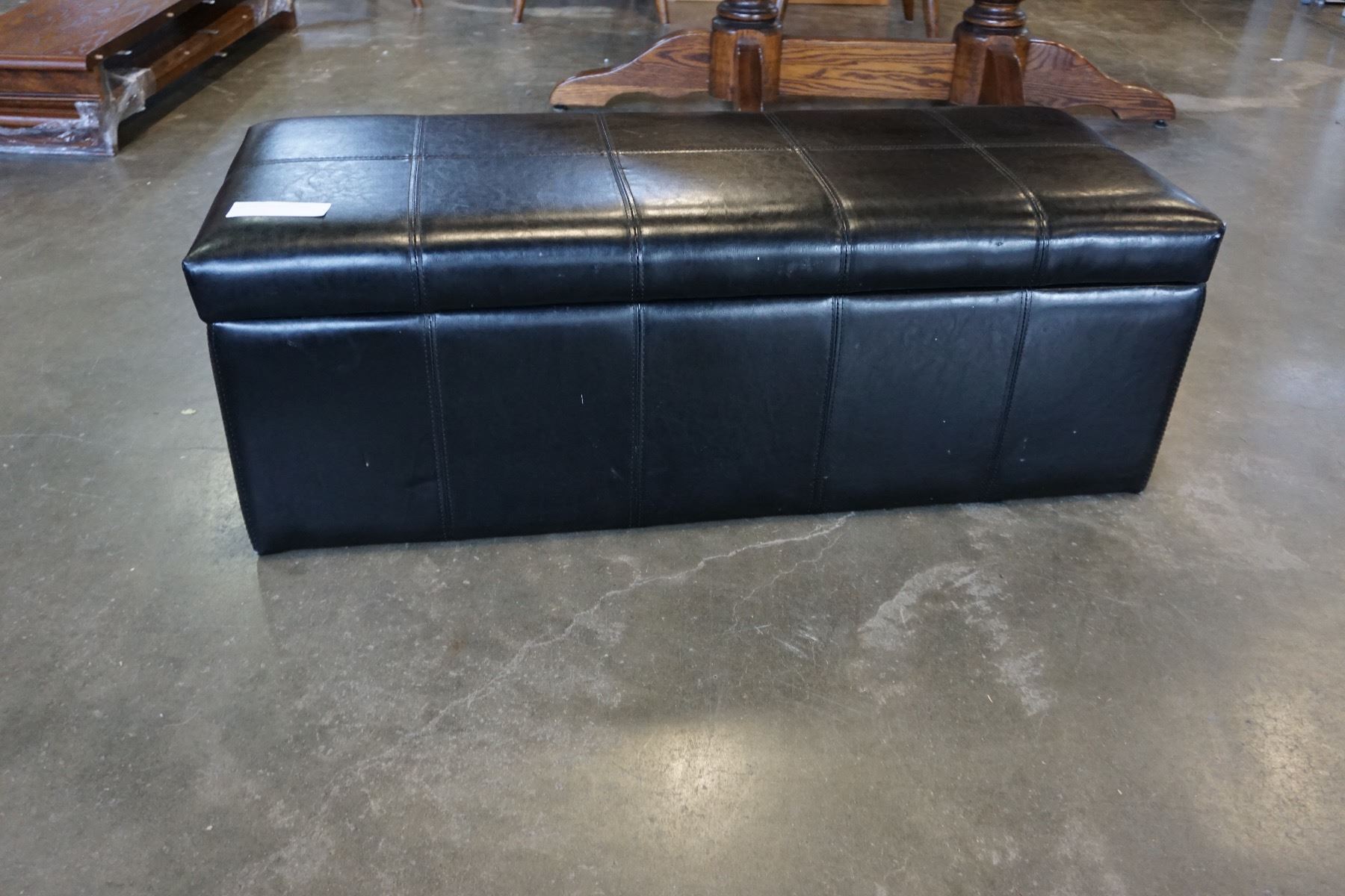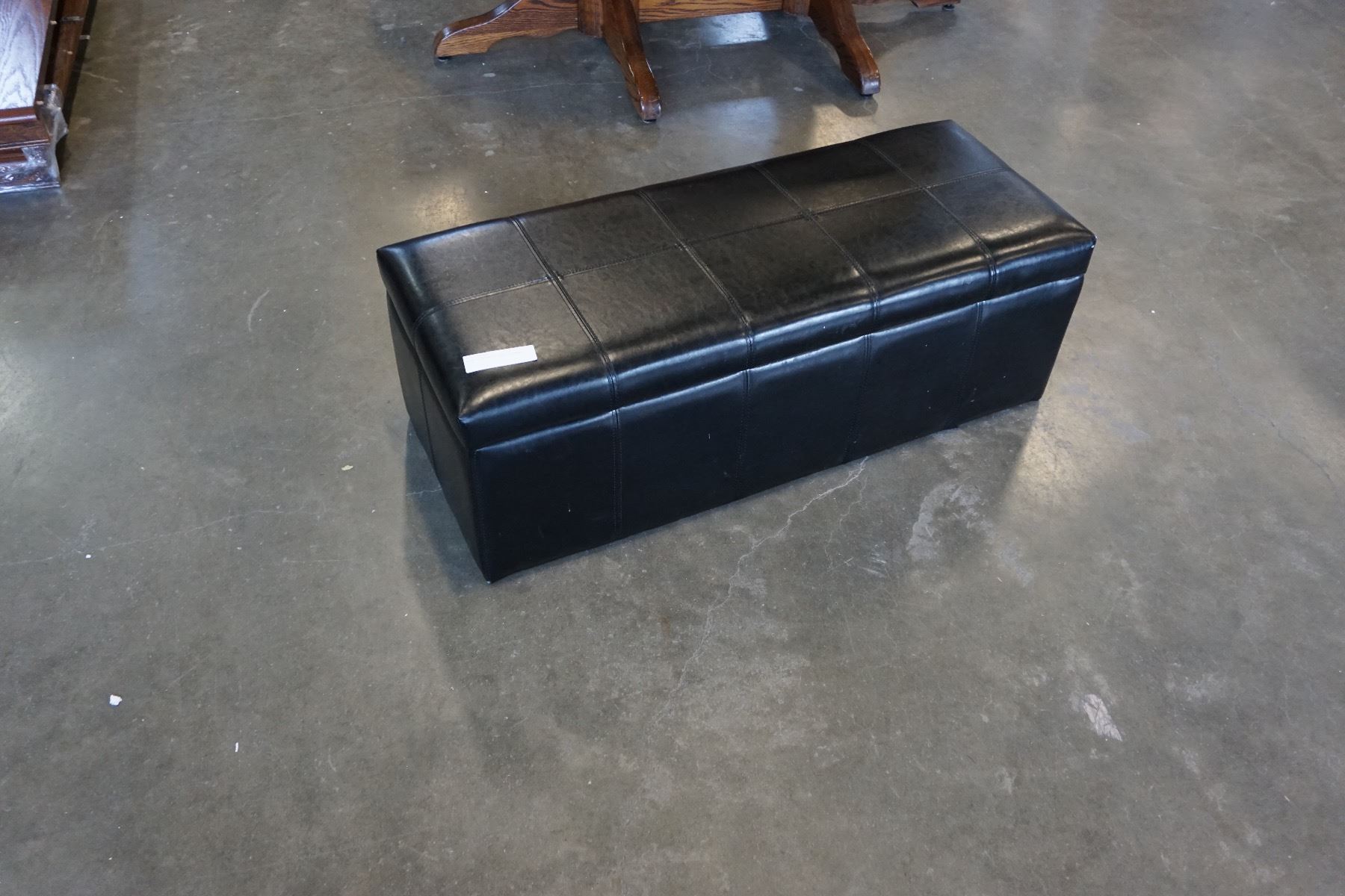 BLACK LEATHER STORAGE OTTOMAN