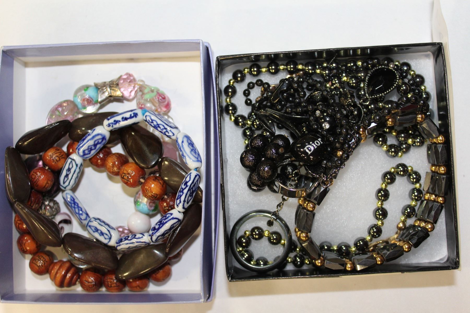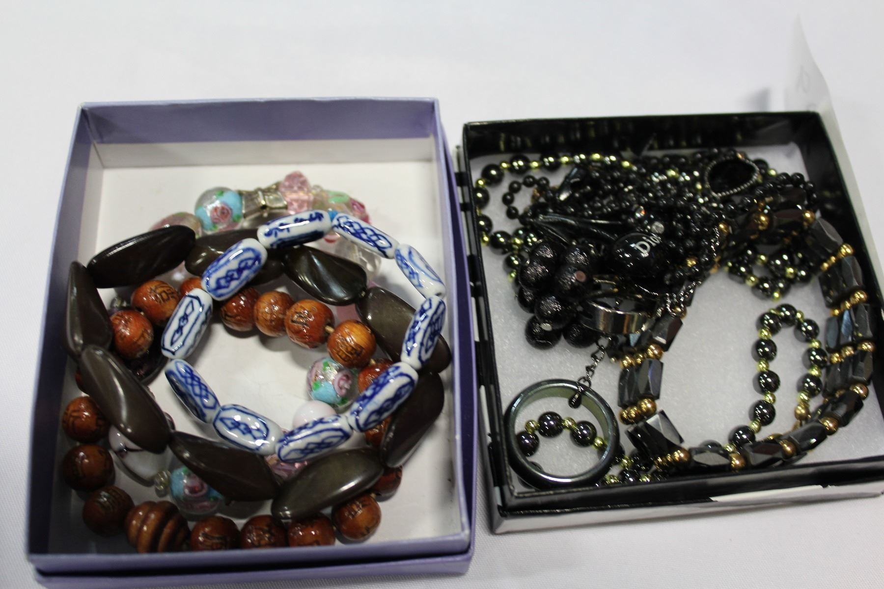 BLACK MAGNETIC HEMATITE JEWELLRY AND TRAY OF BANGLES