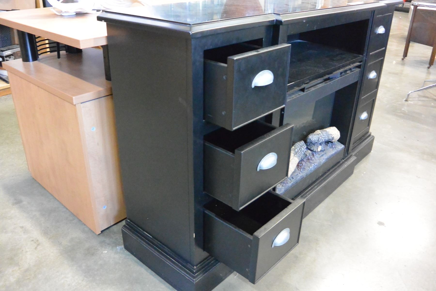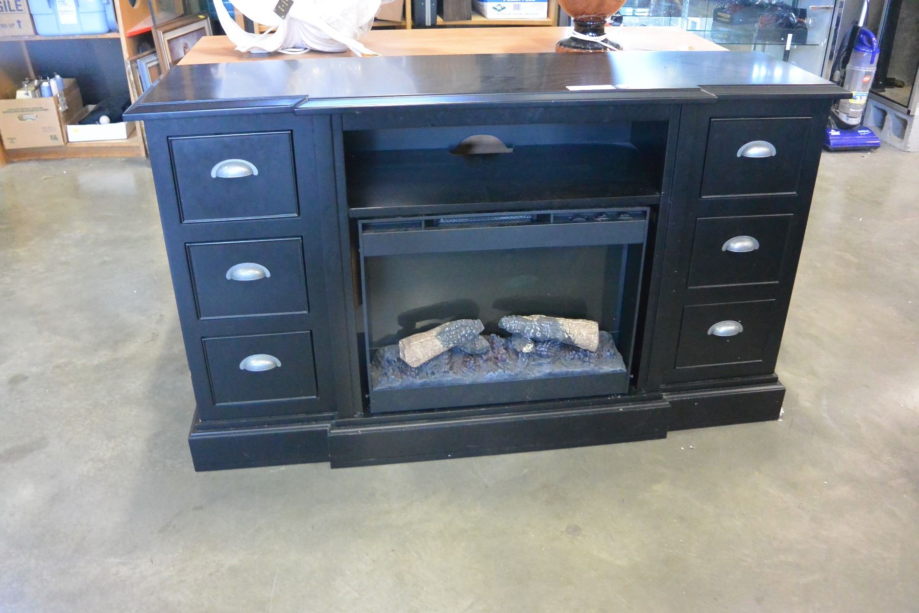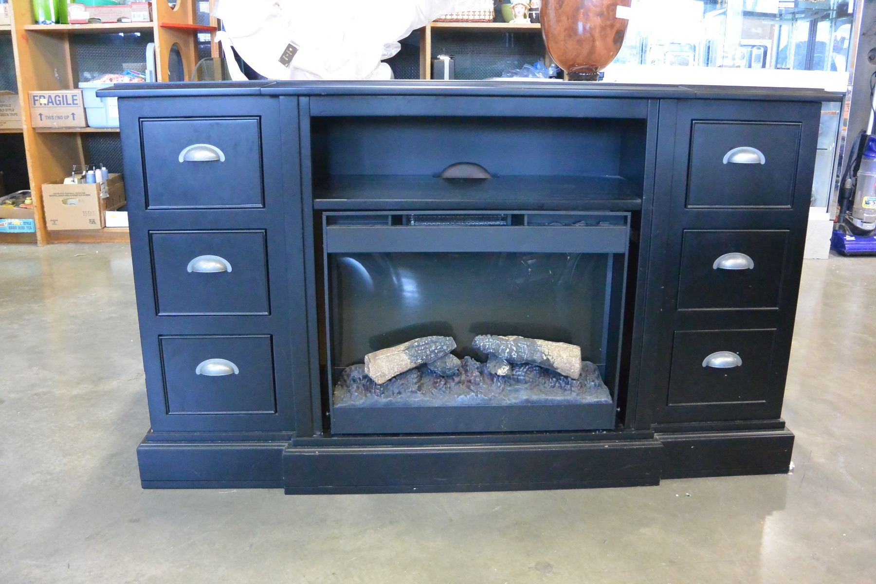 BLACK MANTLE WITH STORAGE AND FIREPLACE