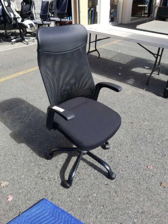 BLACK MESH BACK GAS LIFT CHAIR - RIGHT ARM SUPPORT DAMAGED