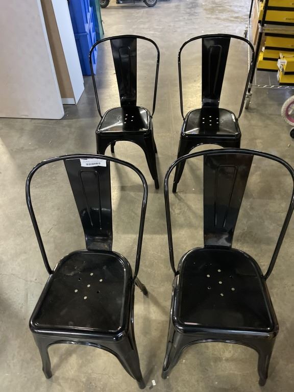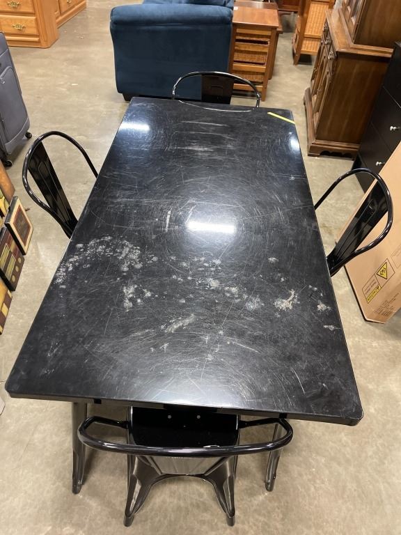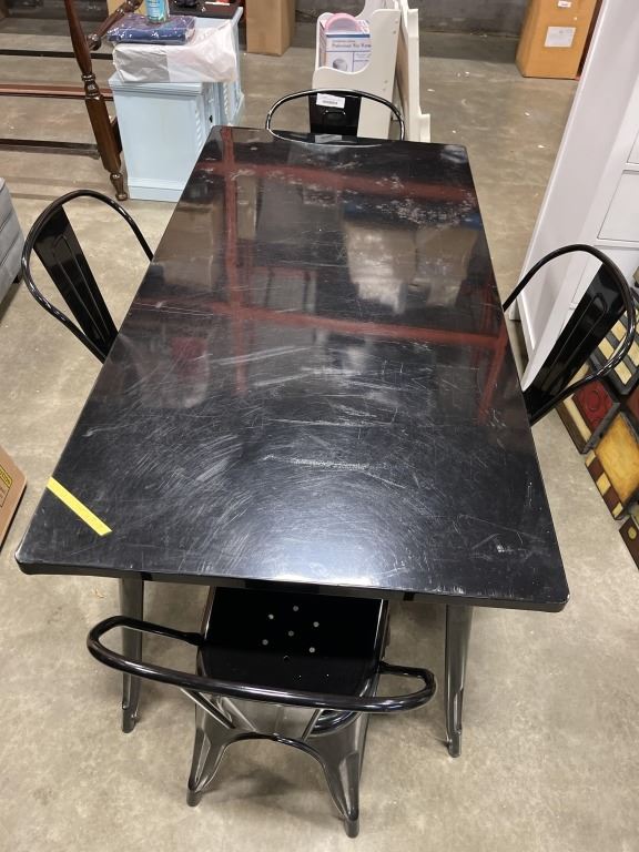 BLACK METAL DINING TABLE WITH 4 BLACK METAL CHAIRS