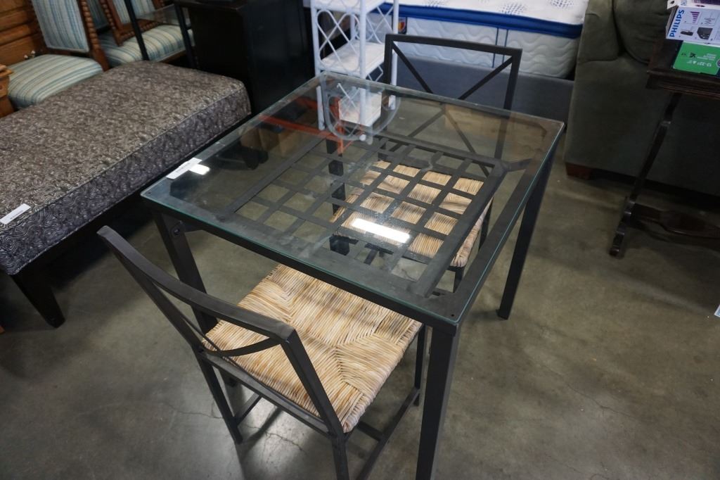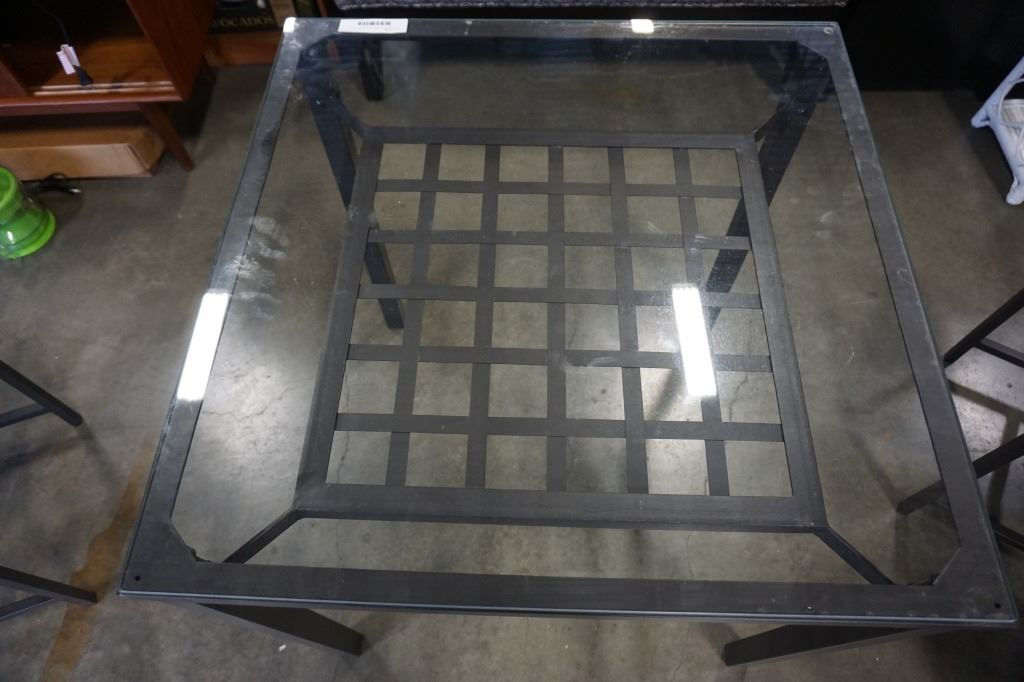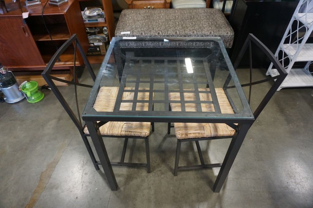 BLACK METAL GLASSTOP DINING TABLE WITH 2 CHAIRS