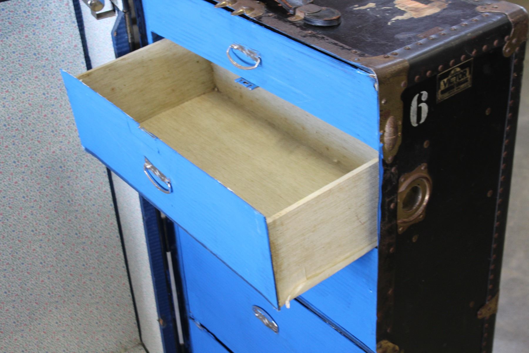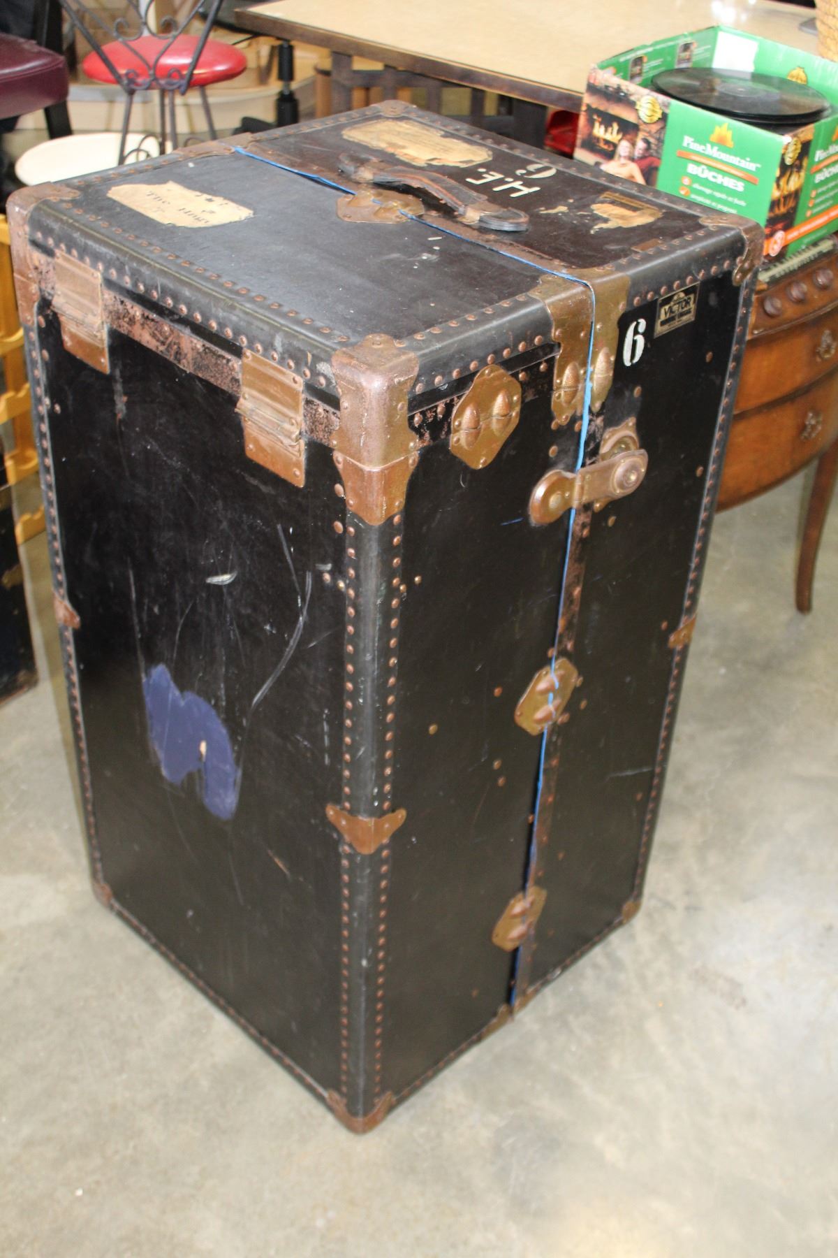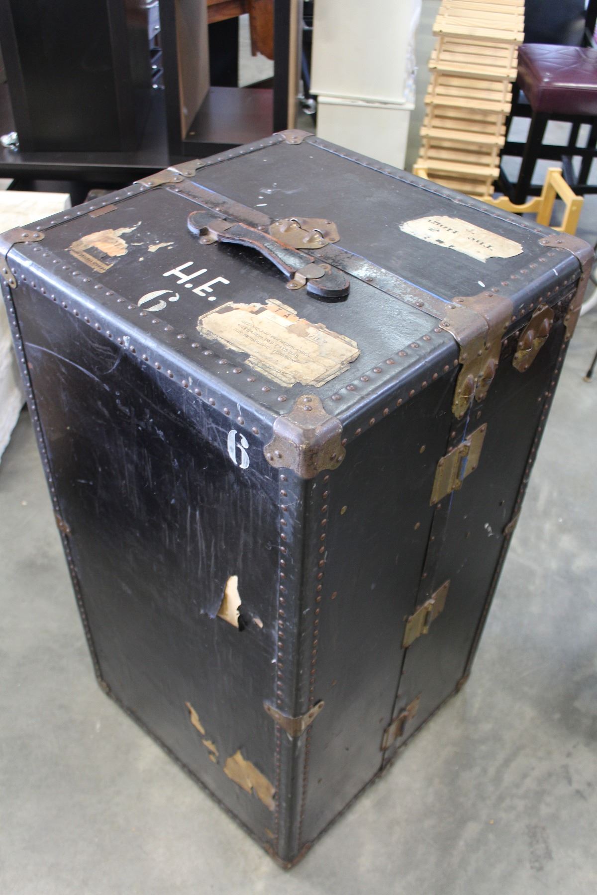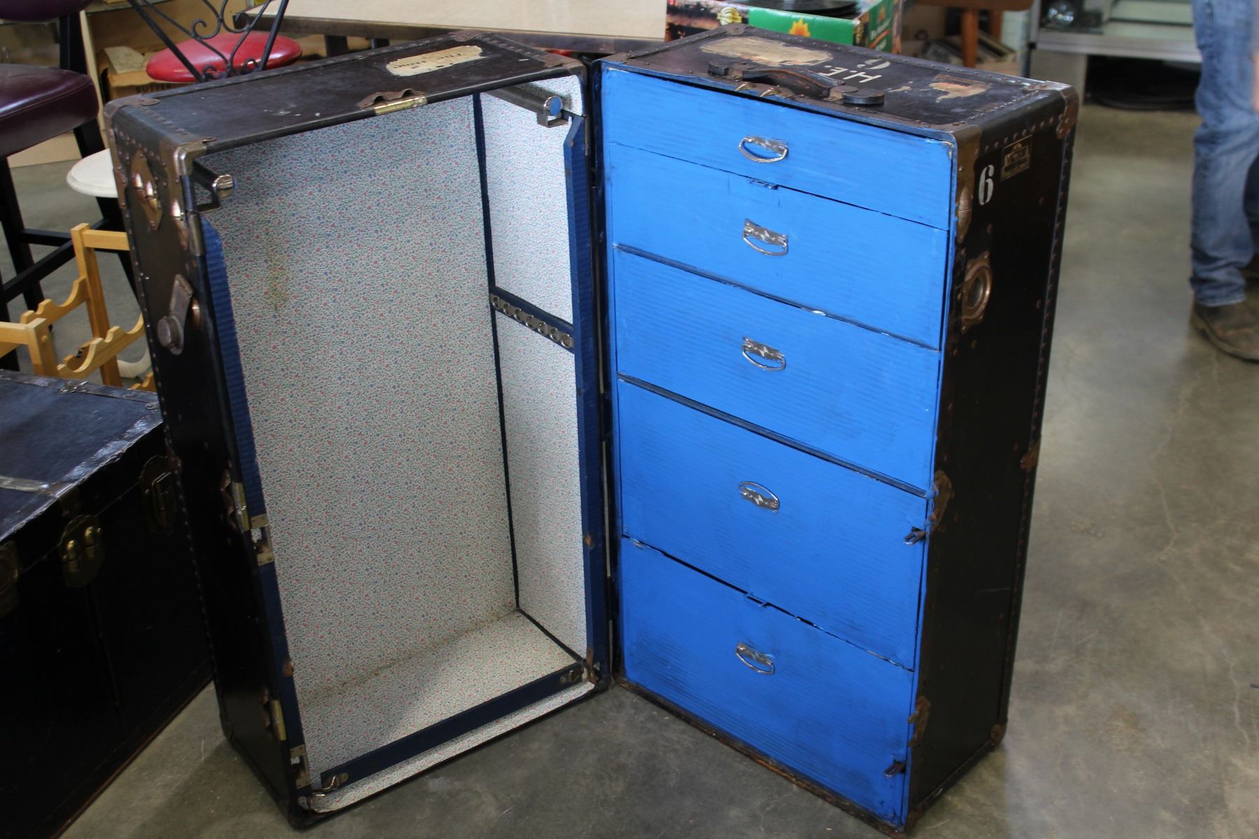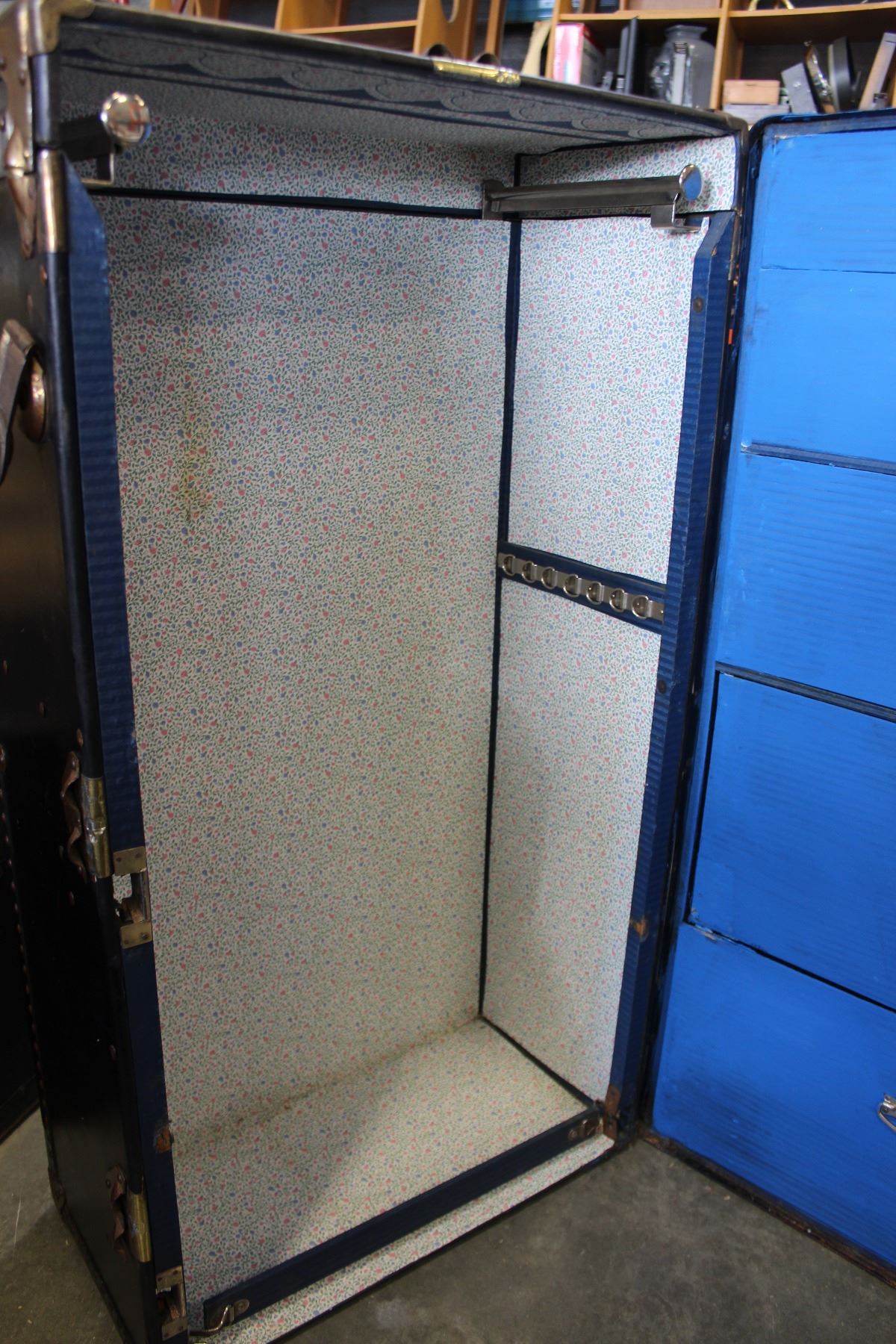 BLACK METAL WARDROBE TRUNK WITH DRAWERS