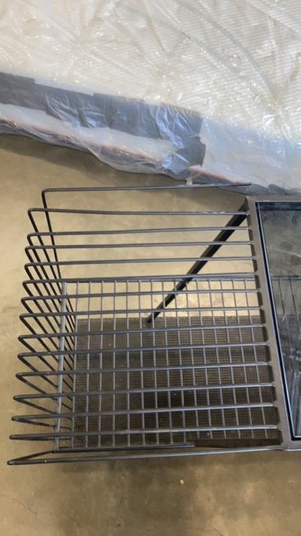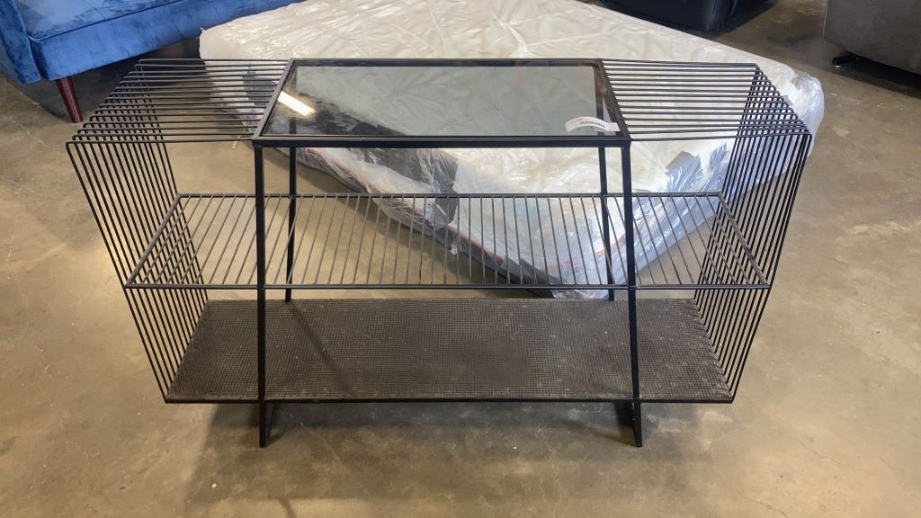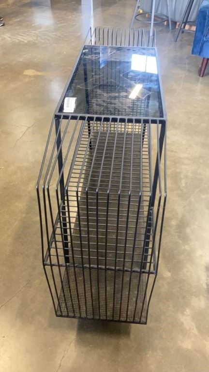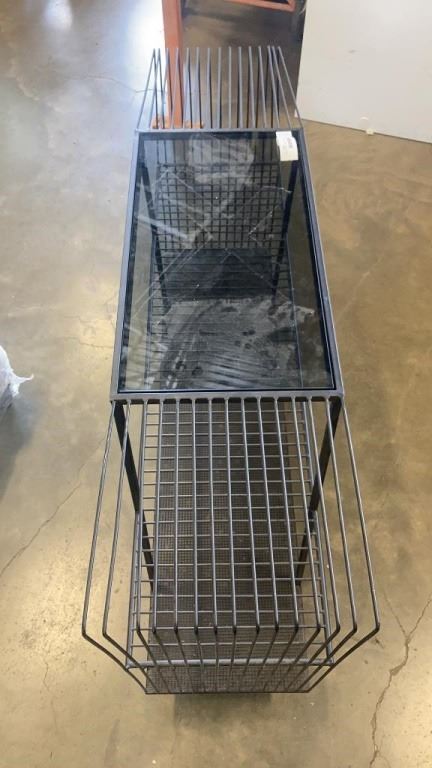BLACK METAL WIRE RECORD STAND WITH GLASS TOP
