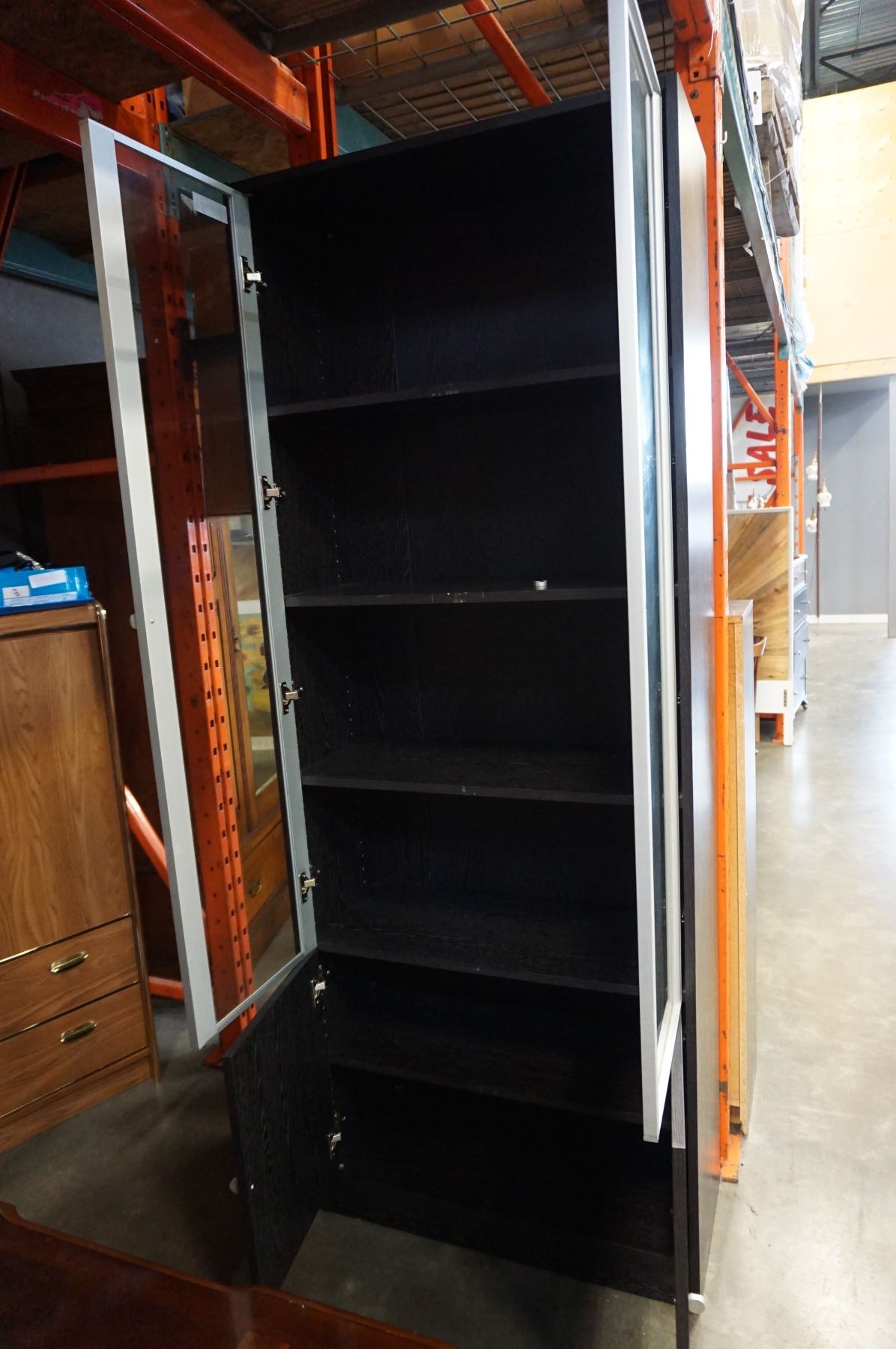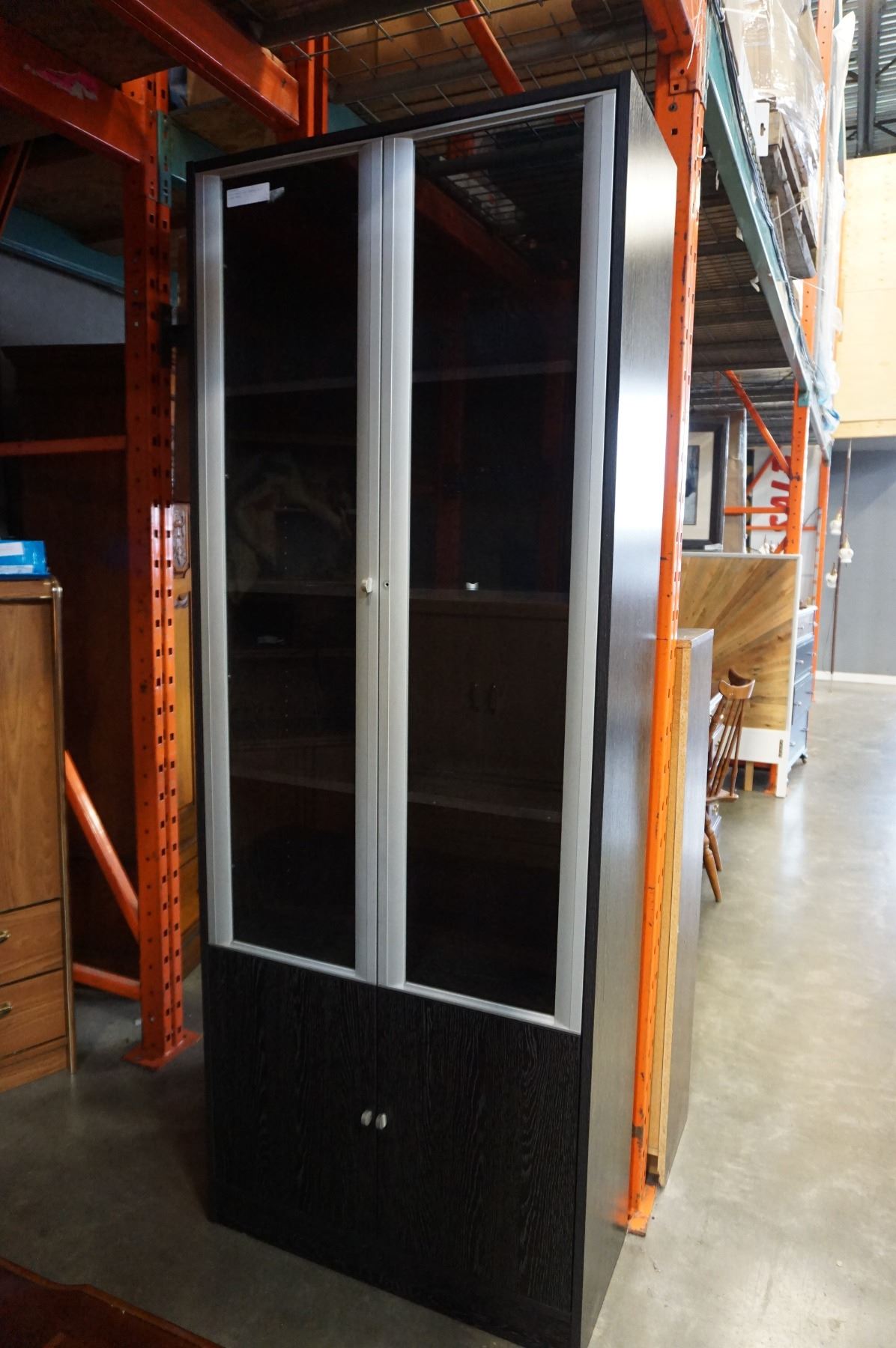 BLACK MODERN IKEA CABINET W/ 2 GLASS DOORS