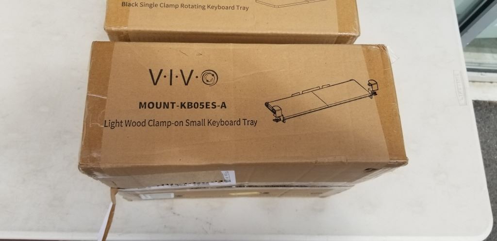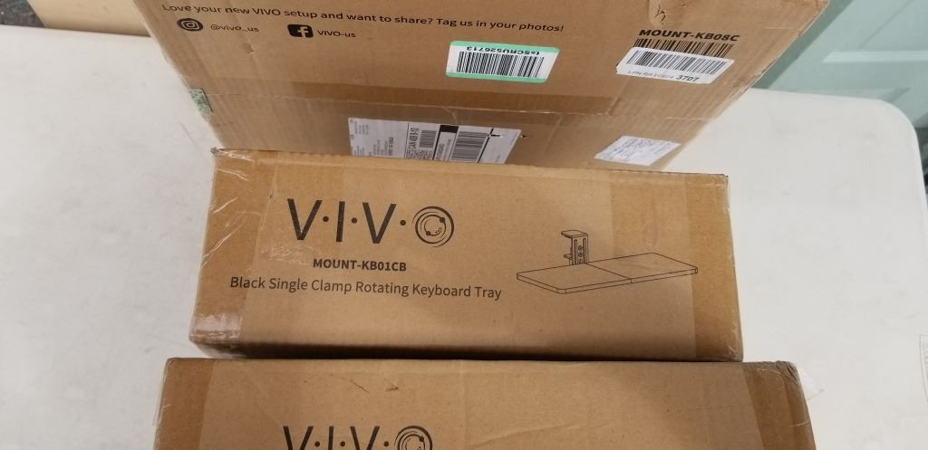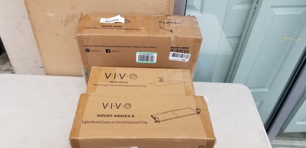 BLACK OFFICE CHAIR MOUNTED KEYBOARD TRAY AND 2 MODELS OF DESK KEYBOARD TRAYS