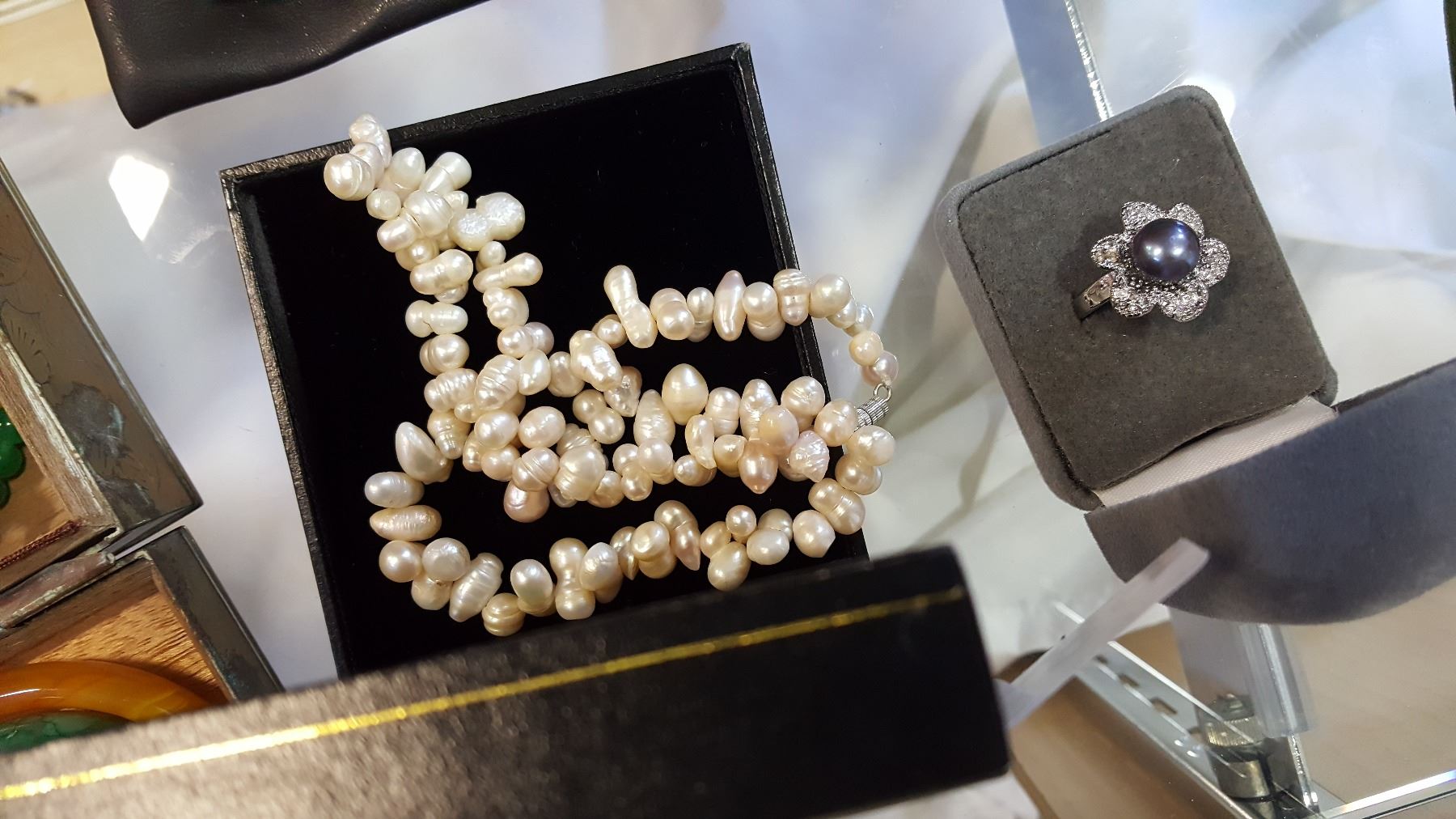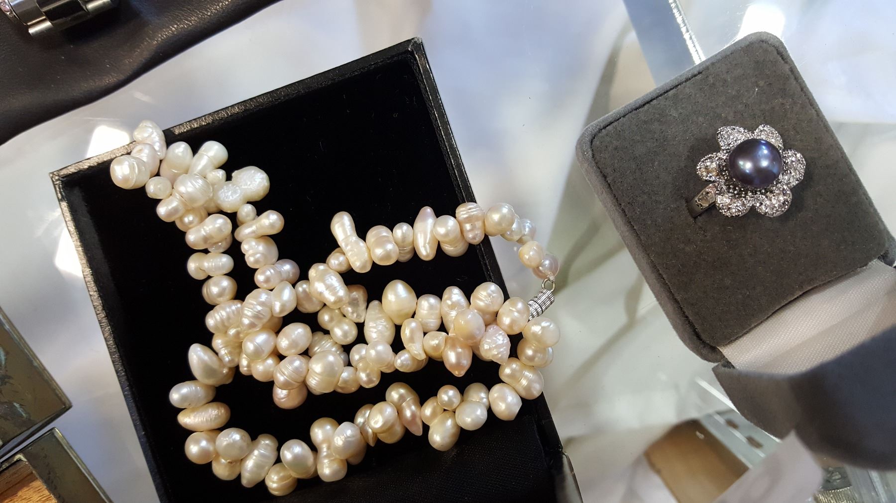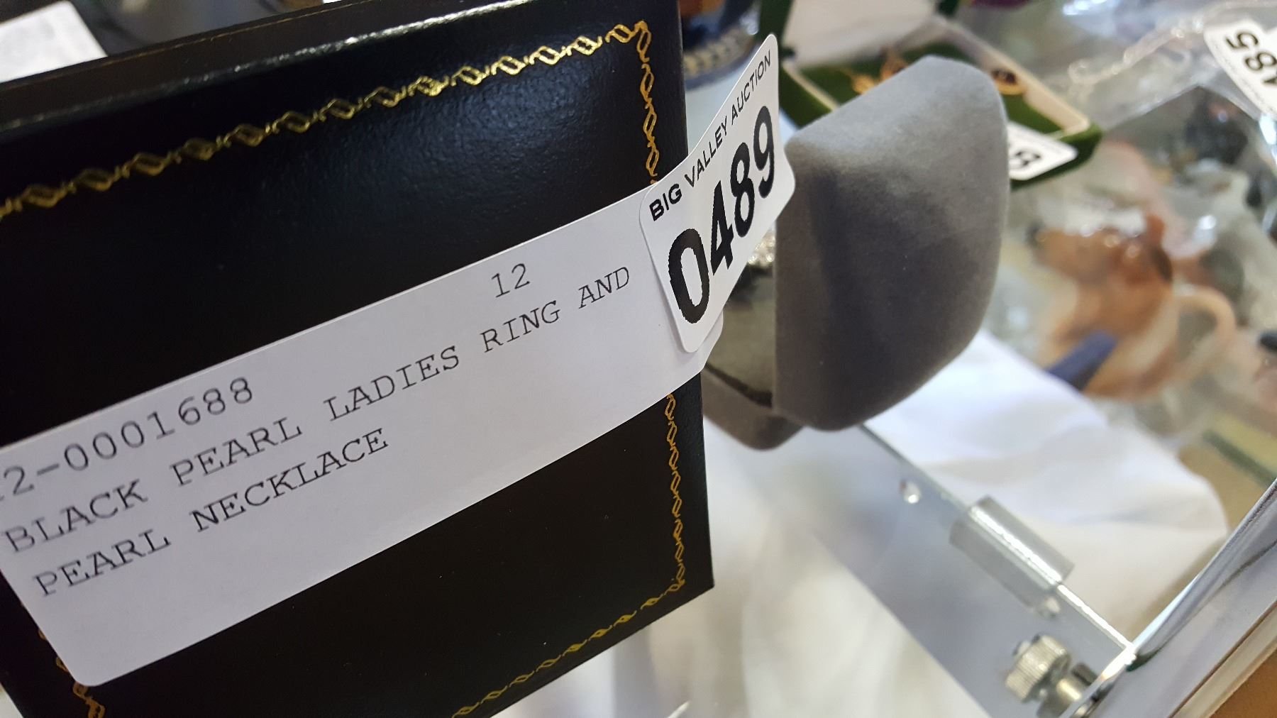 BLACK PEARL LADIES RING AND PEARL NECKLACE