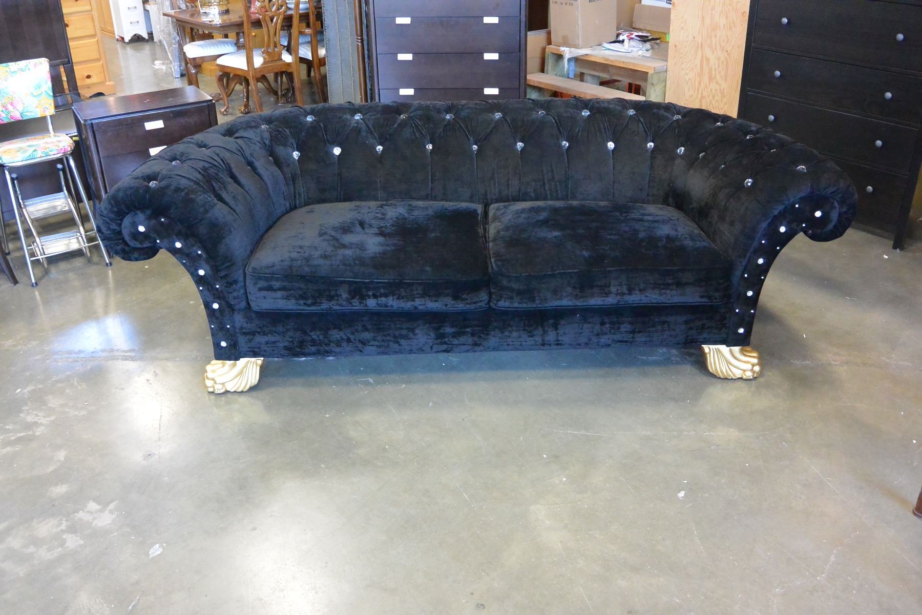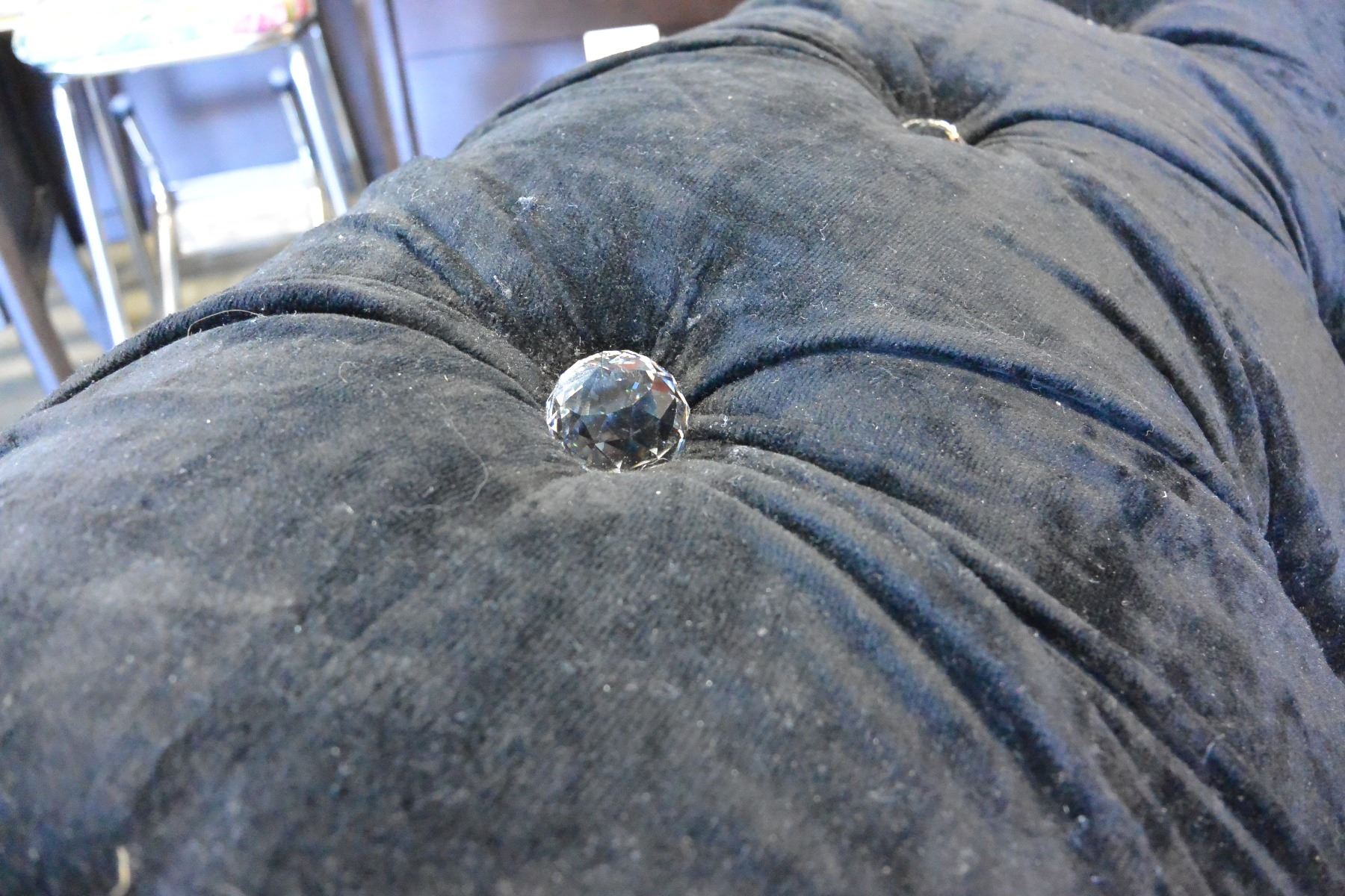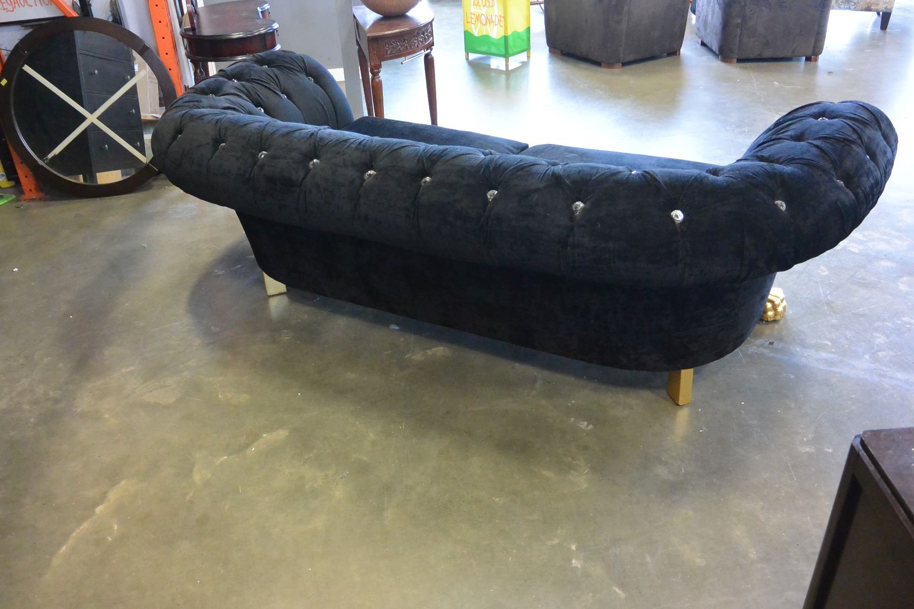 BLACK ROLLED ARM SOFA WITH PLASTIC CRYSTAL STUDS