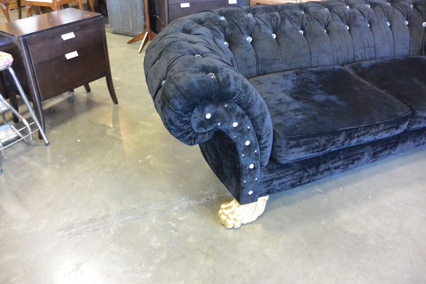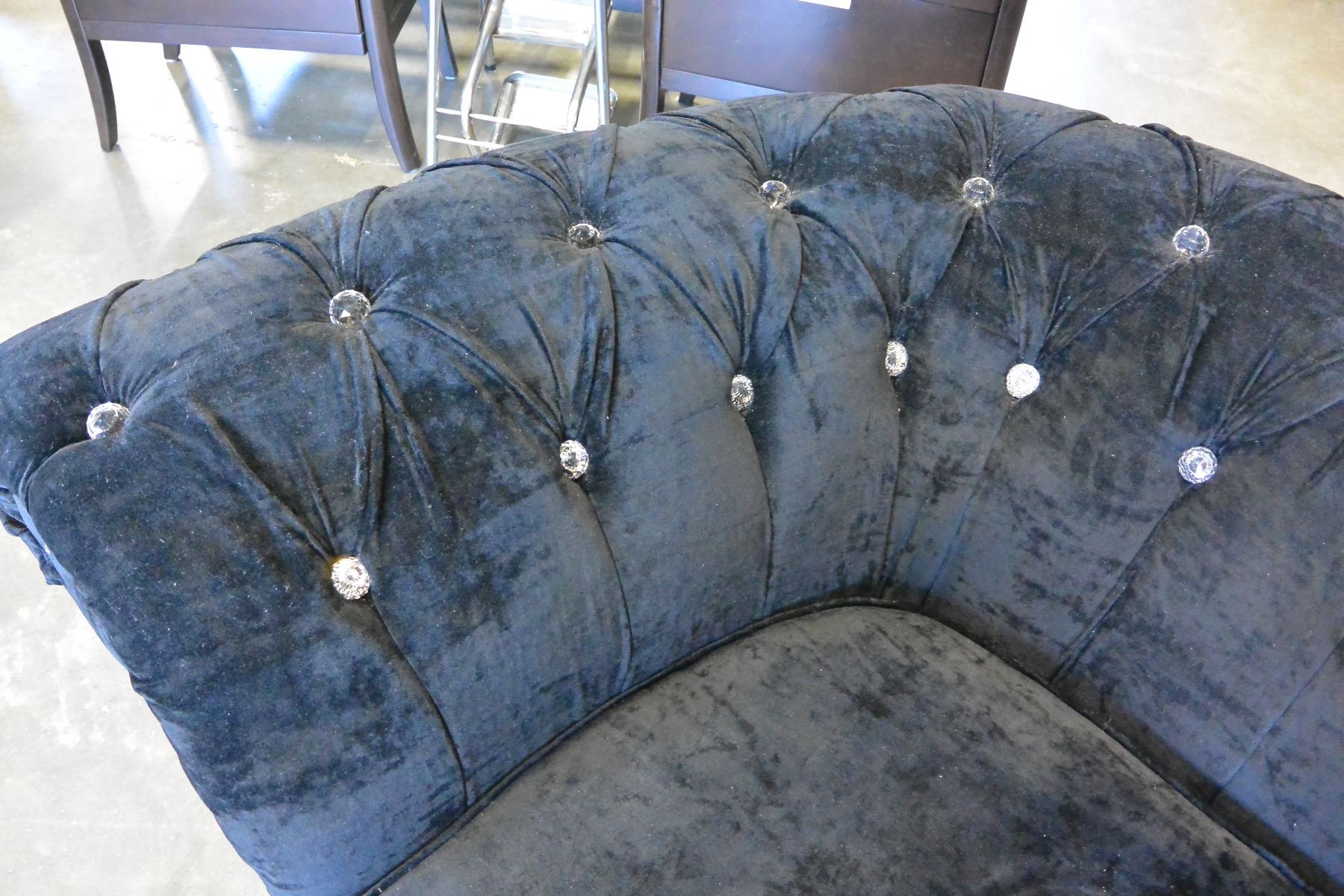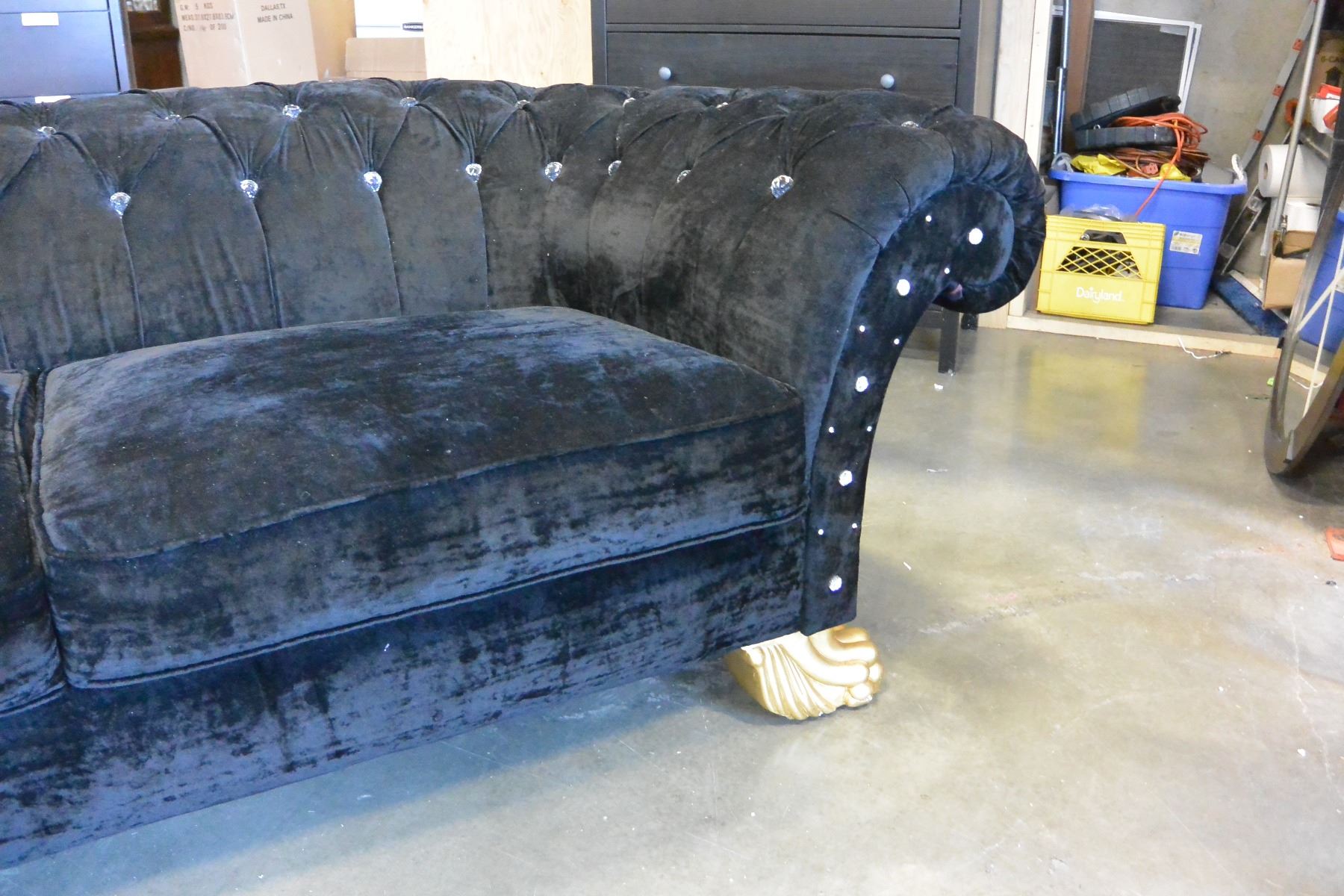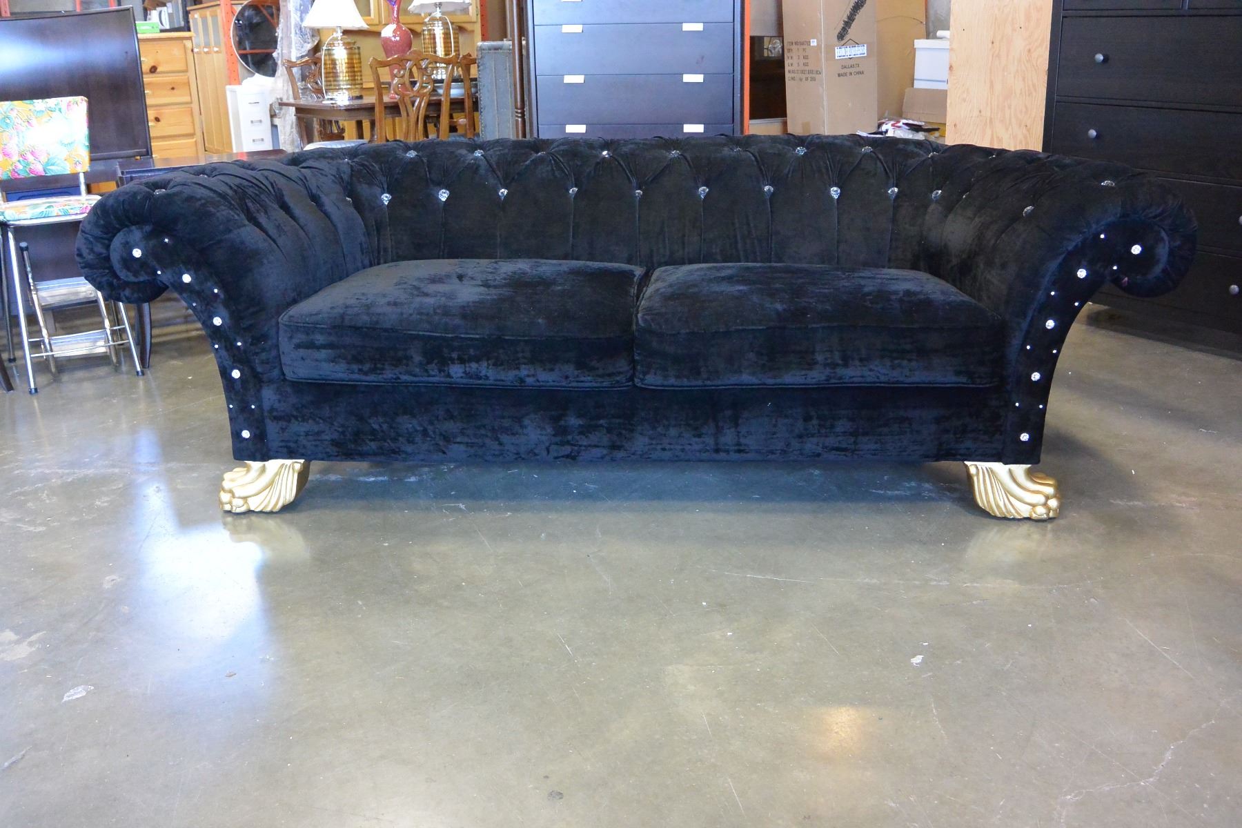 BLACK ROLLED ARM SOFA WITH PLASTIC CRYSTAL STUDS