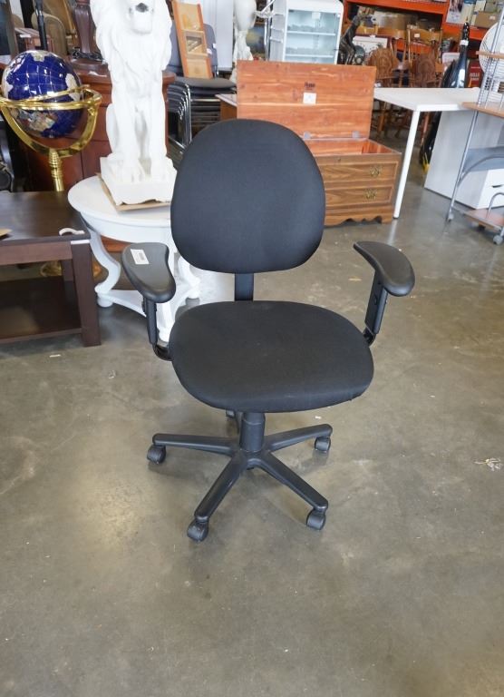 BLACK ROLLING GAS LIFT OFFICE CHAIR - ADJUSTABLE BACK AND TILT