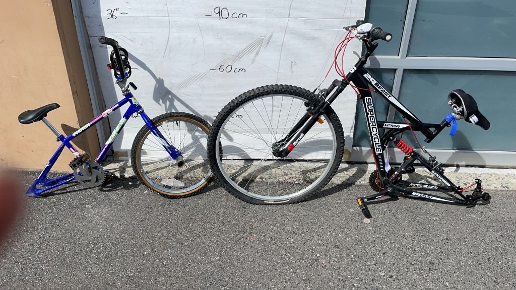 BLACK SUPERCYCLE BIKE AND BLUE PHOTON BIKE