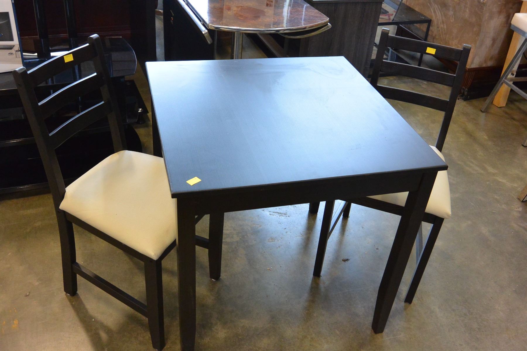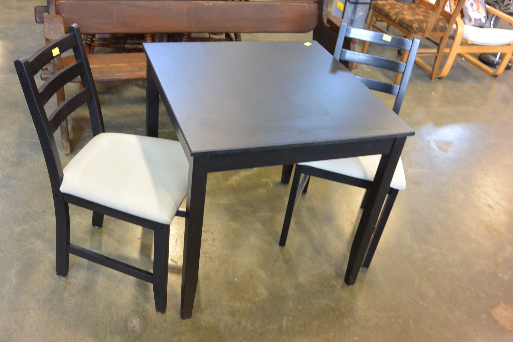 BLACK TABLE AND 2 CHAIRS