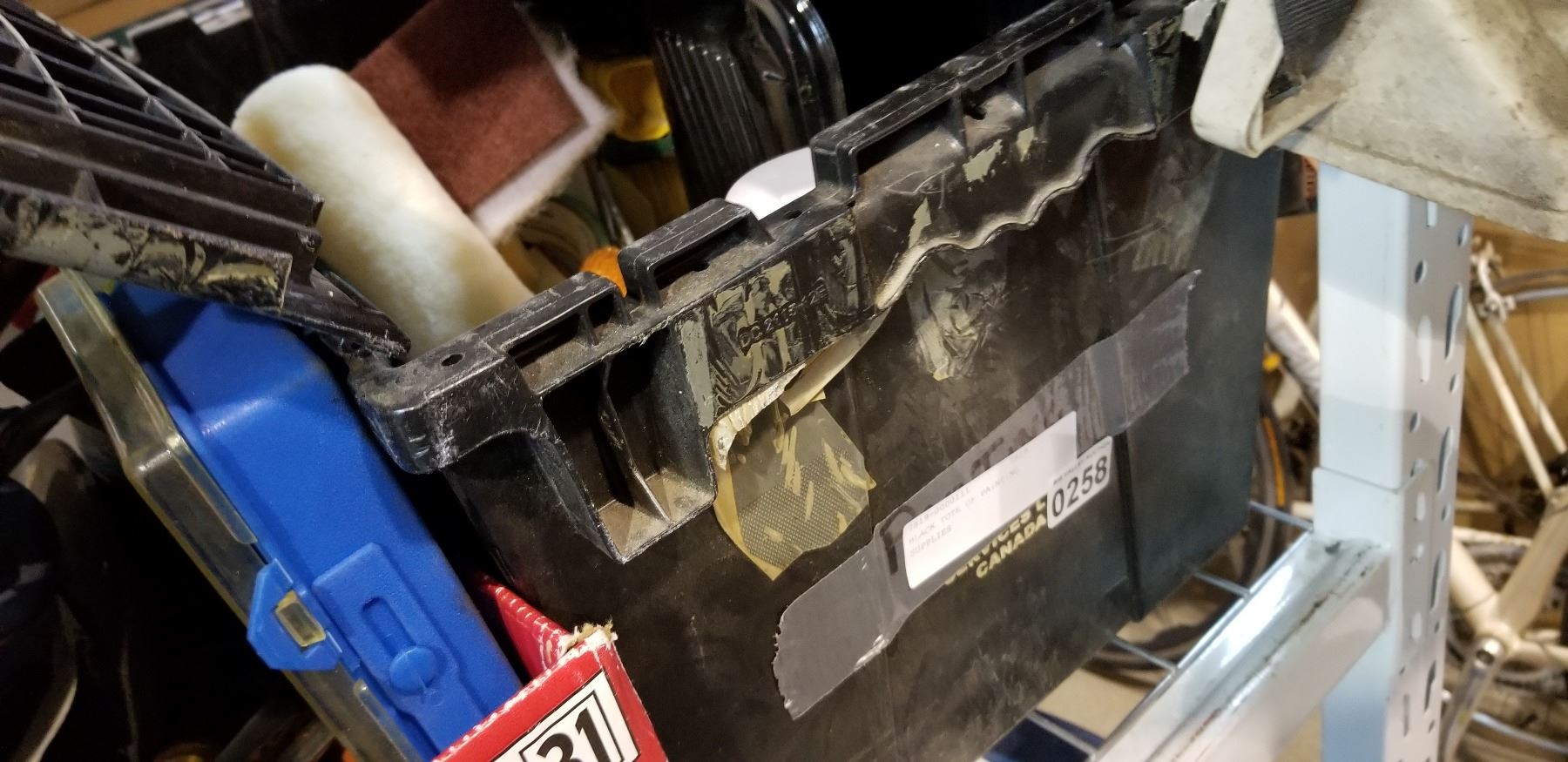 BLACK TOTE OF PAINTING SUPPLIES