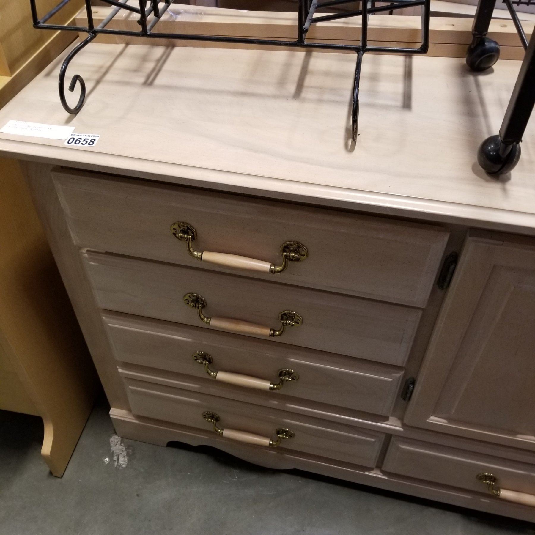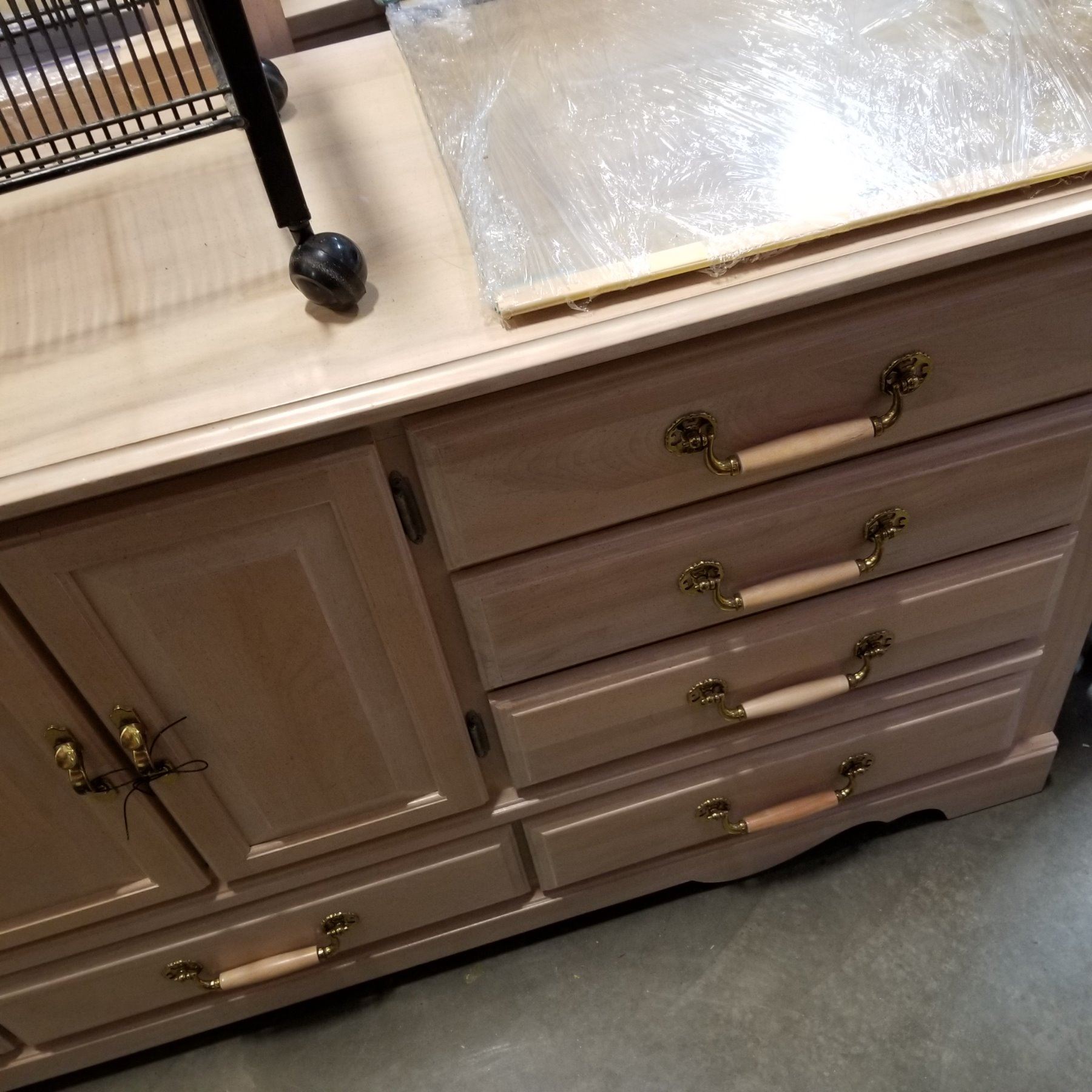 BLEACHED OAK DRESSER AND TRIPLE SWING MIRROR