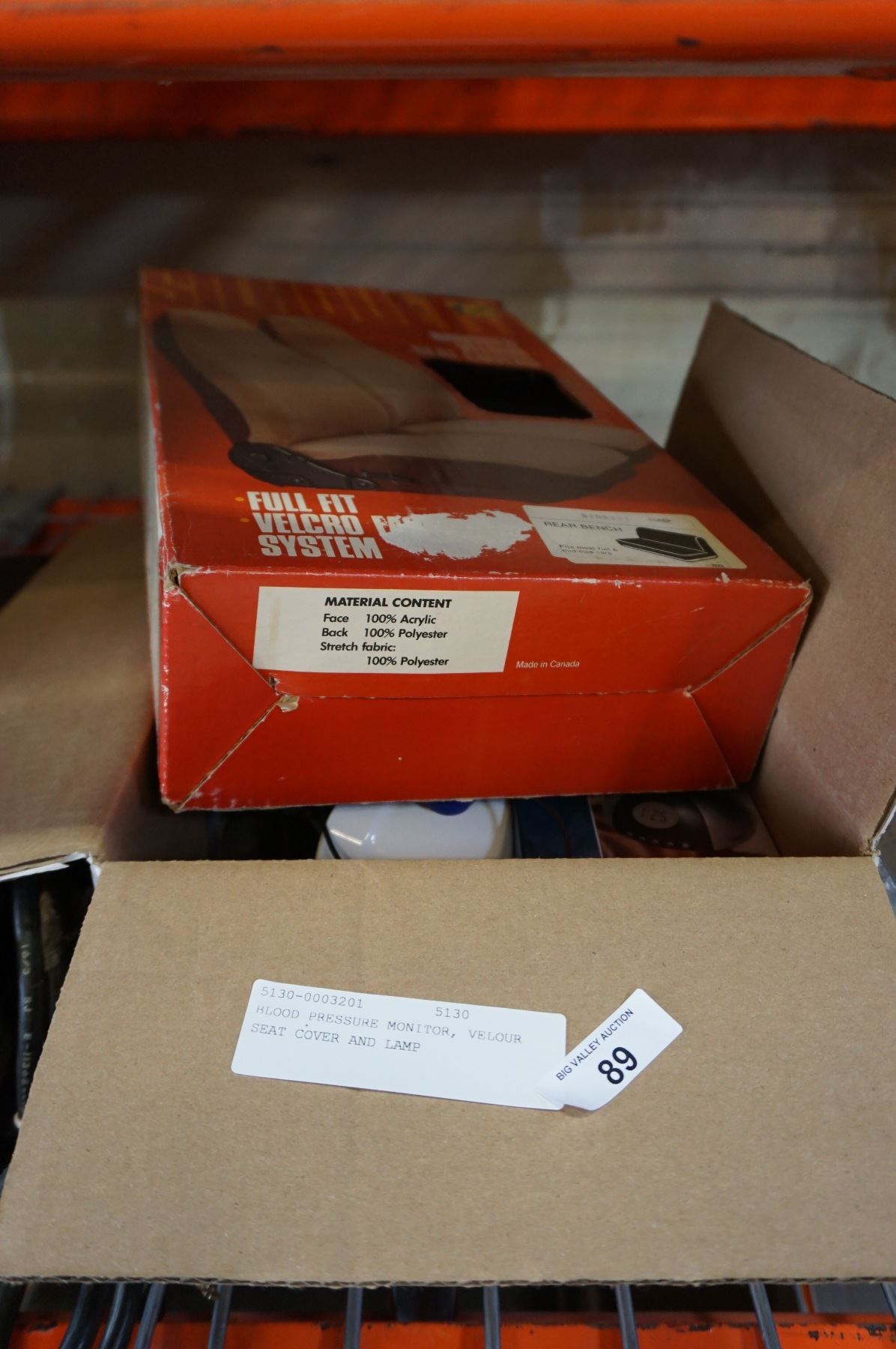 BLOOD PRESSURE MONITOR, VELOUR SEAT COVER AND LAMP