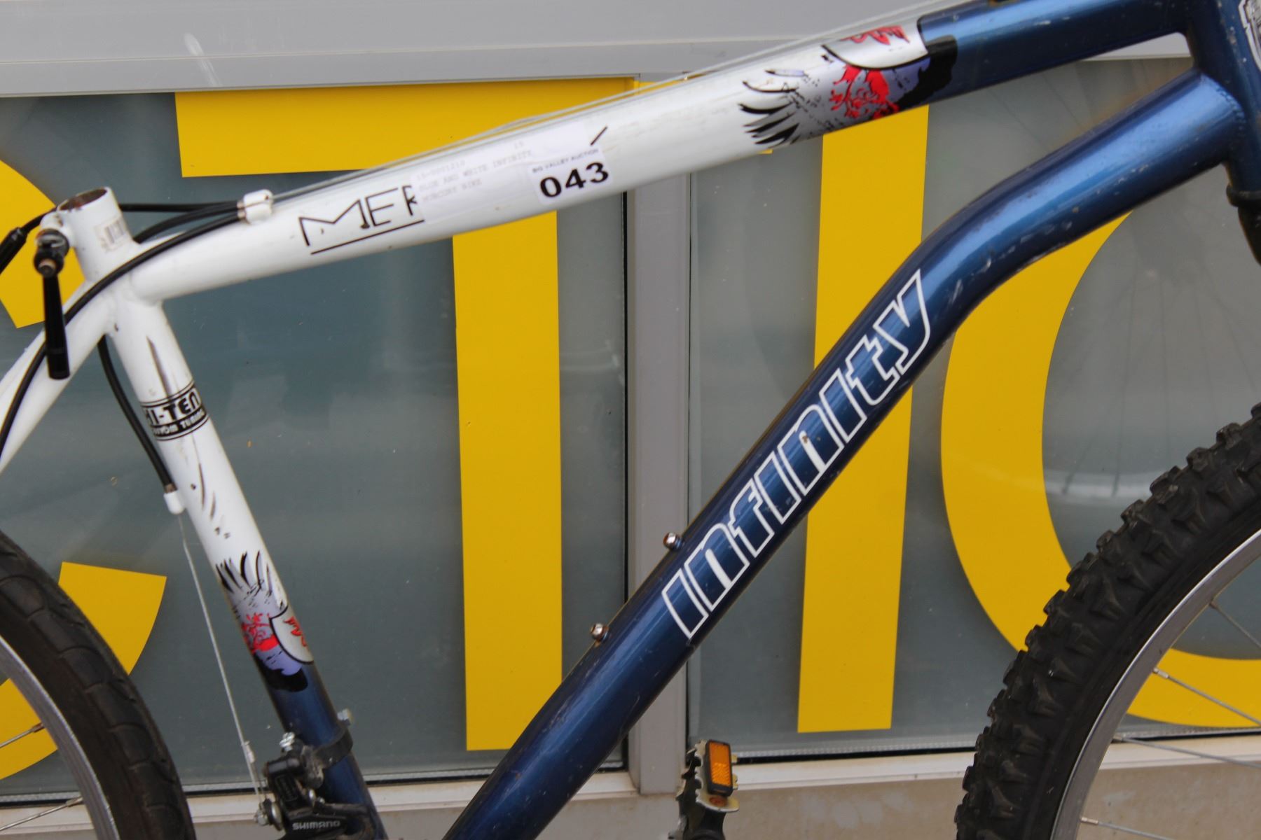BLUE AND WHITE INFINITY MURCURY BIKE