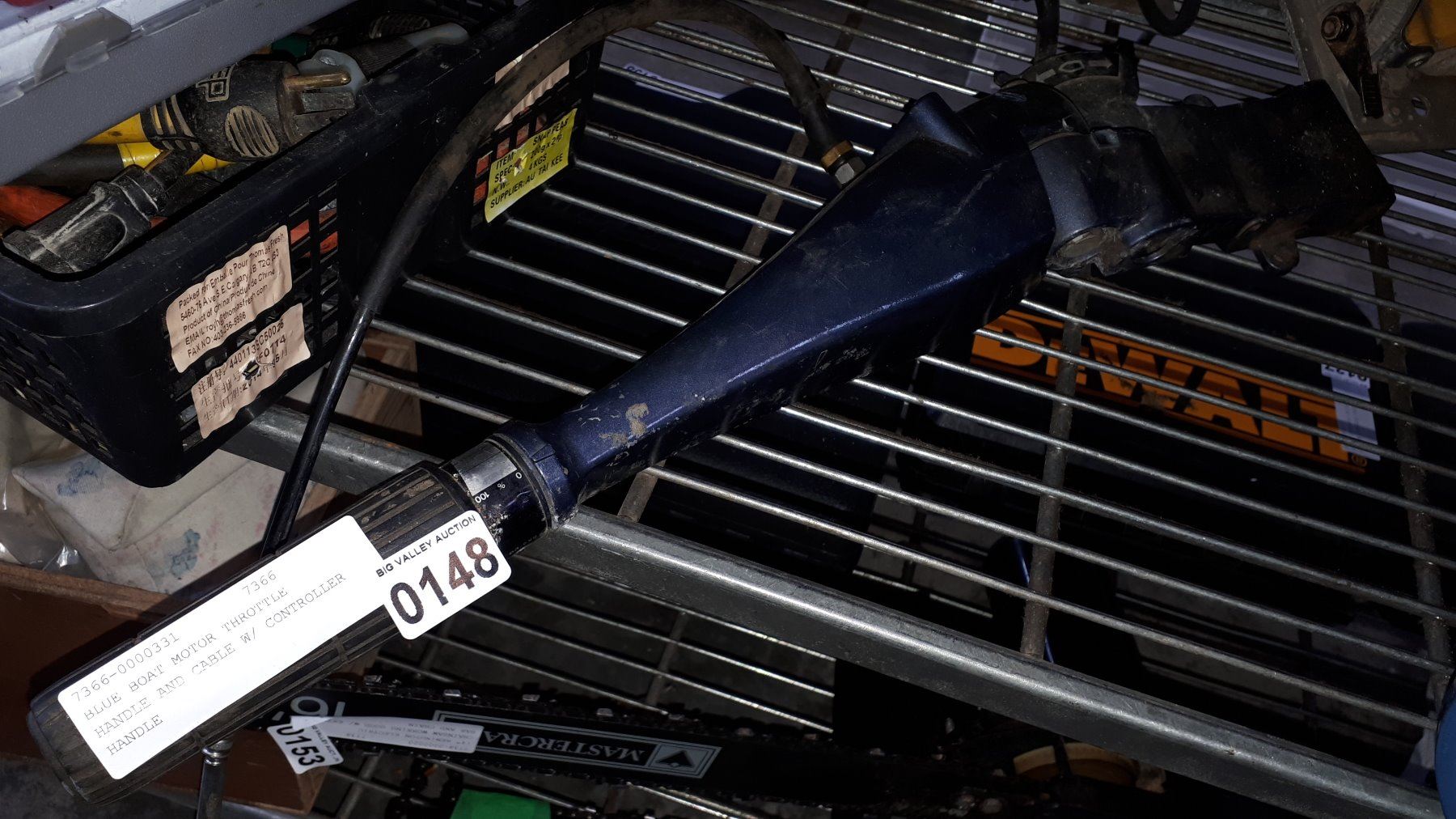 BLUE BOAT MOTOR THROTTLE HANDLE AND CABLE W/ CONTROLLER HANDLE