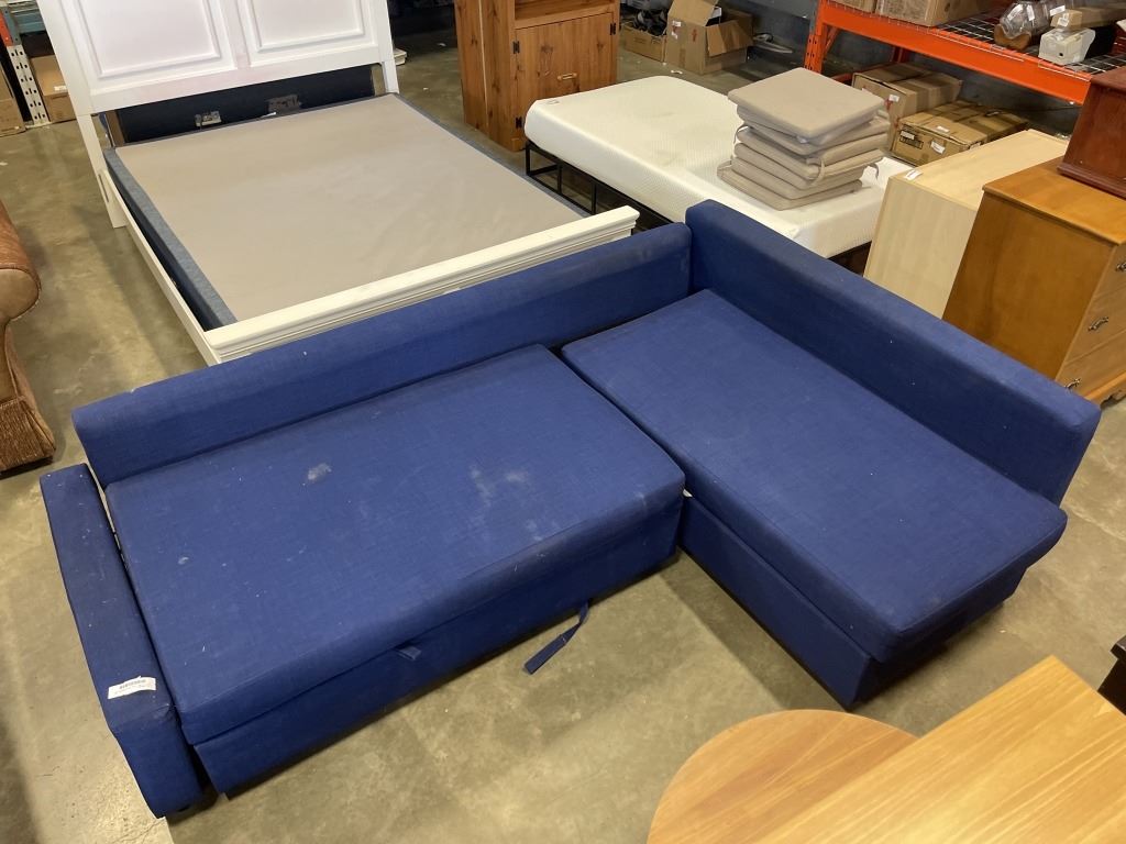 BLUE IKEA SECTIONAL WITH STORAGE AND PULL OUT BED