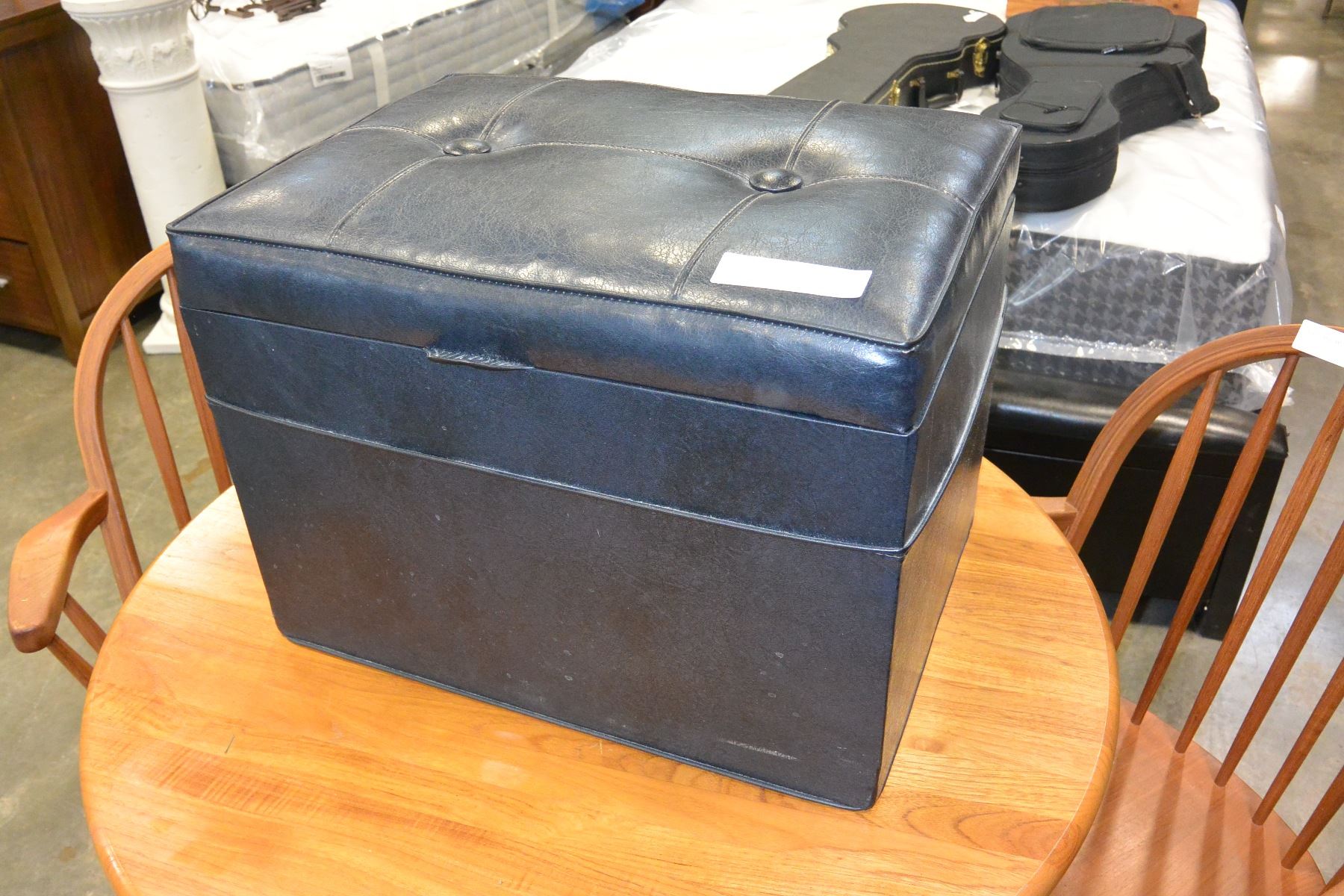 BLUE LEATHER OTTOMAN