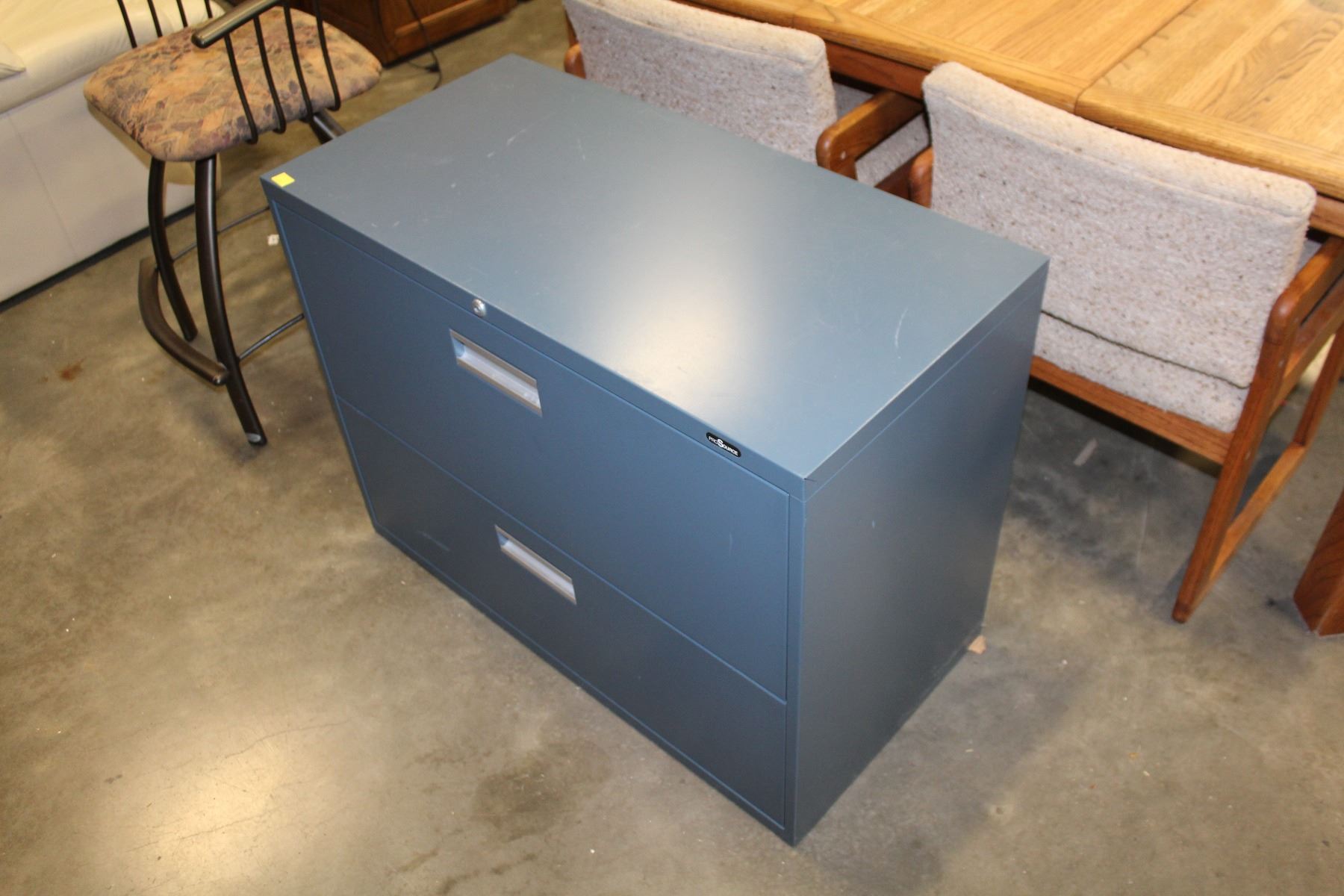BLUE METAL 2 DRAWER LATERAL FILING CABINET