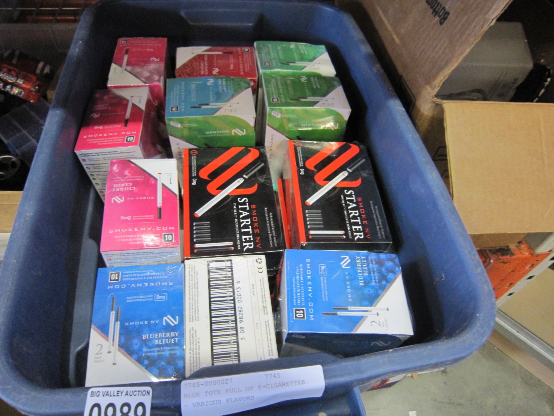BLUE TOTE FULL OF E-CIGARETTES - VARIOUS FLAVORS