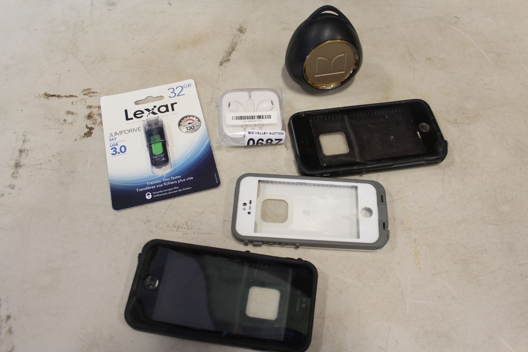 BLUETOOTH SPEAKER EARBUDS MEMORY STICK AND PHONE CASES