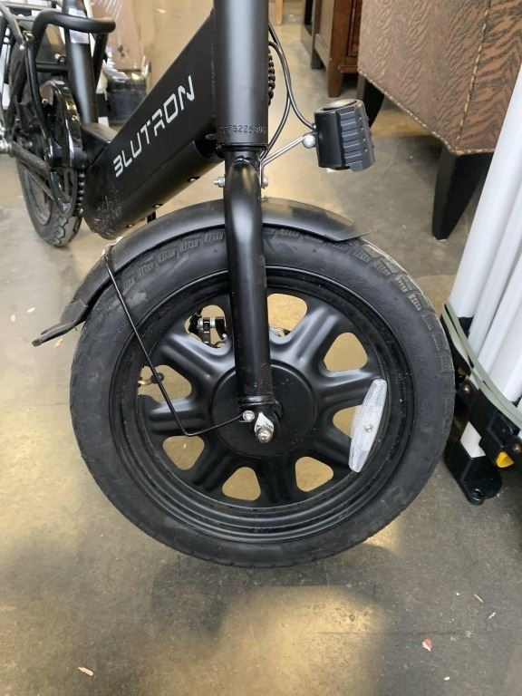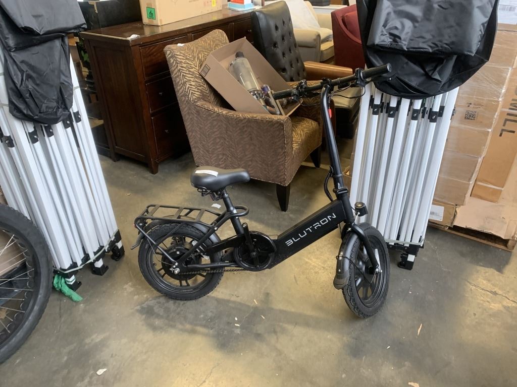 BLUTRON EB350 COMPACT FOLDABLE ELECTRIC BIKE W/ UP TO 33KM BATTERY RANGE, MISSING PEDALS - TESTED WORKING, RETAIL $499