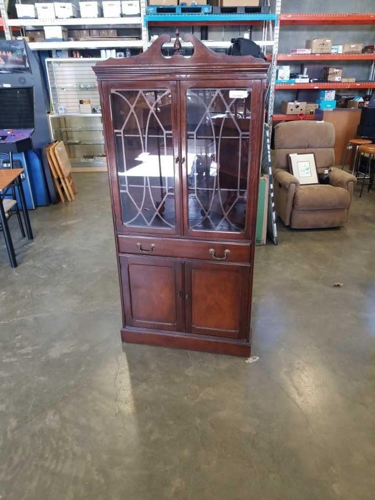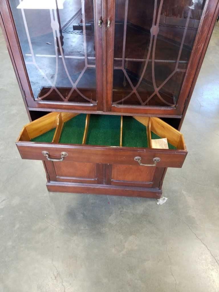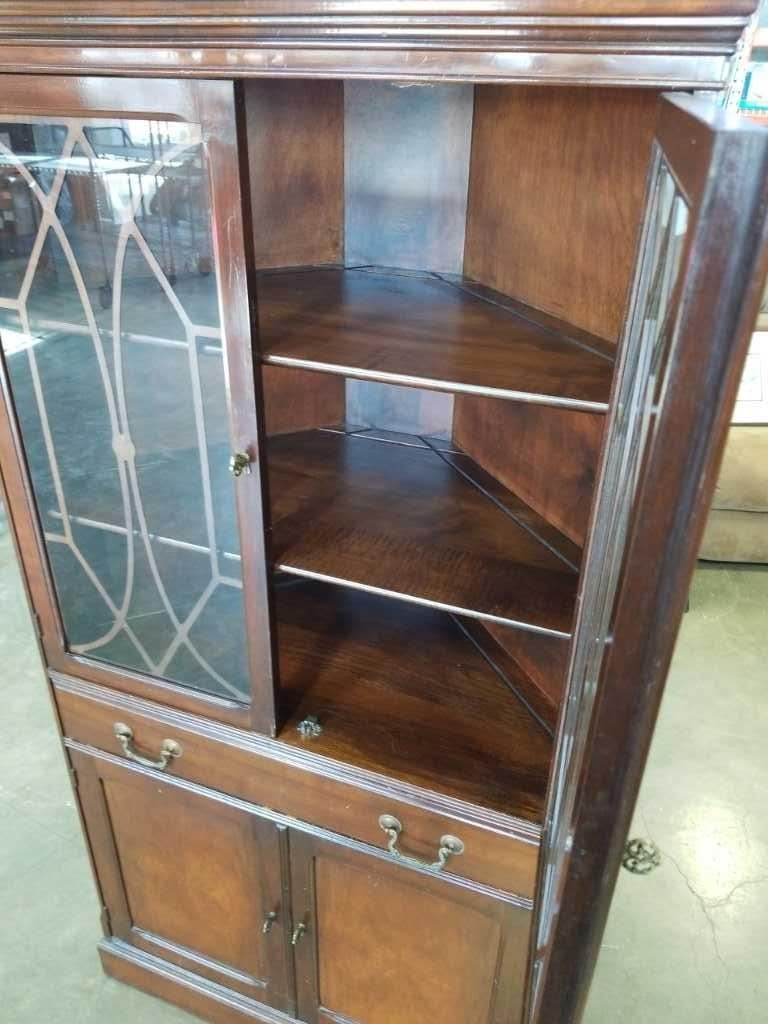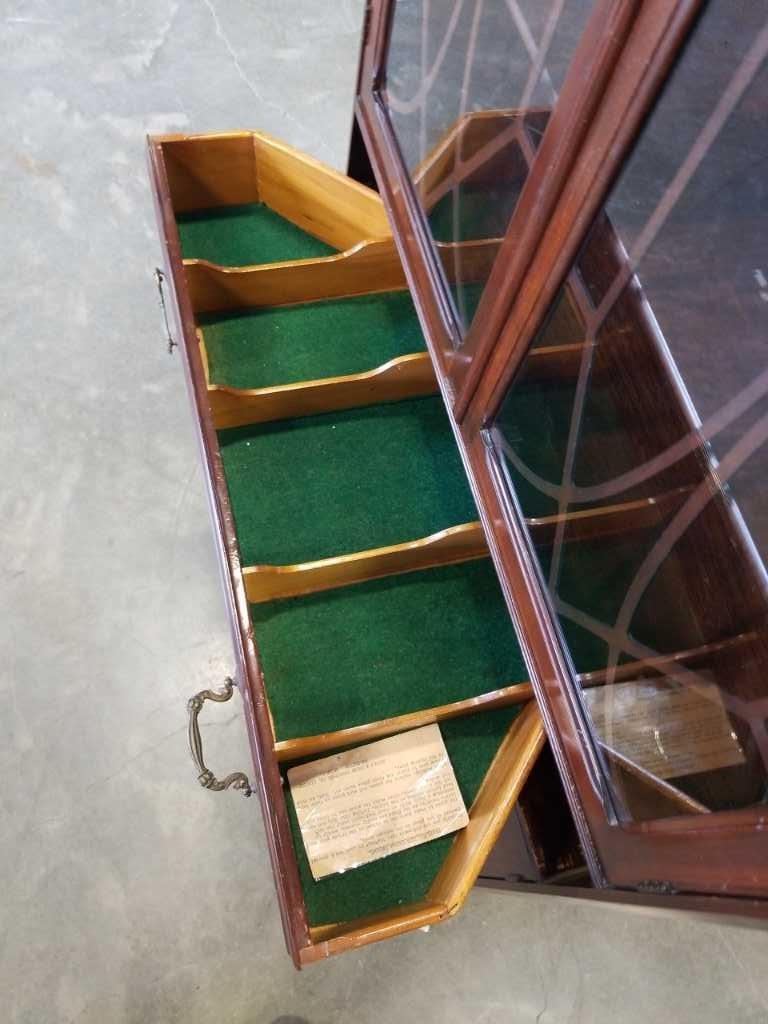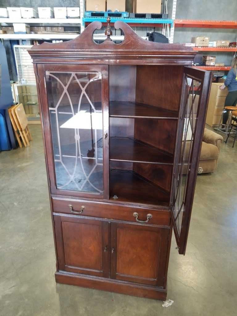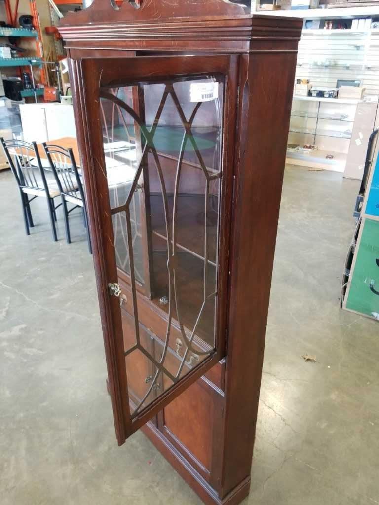 BOGDON AND GROSS GLASS DOOR CORNER DISPLAY CABINET