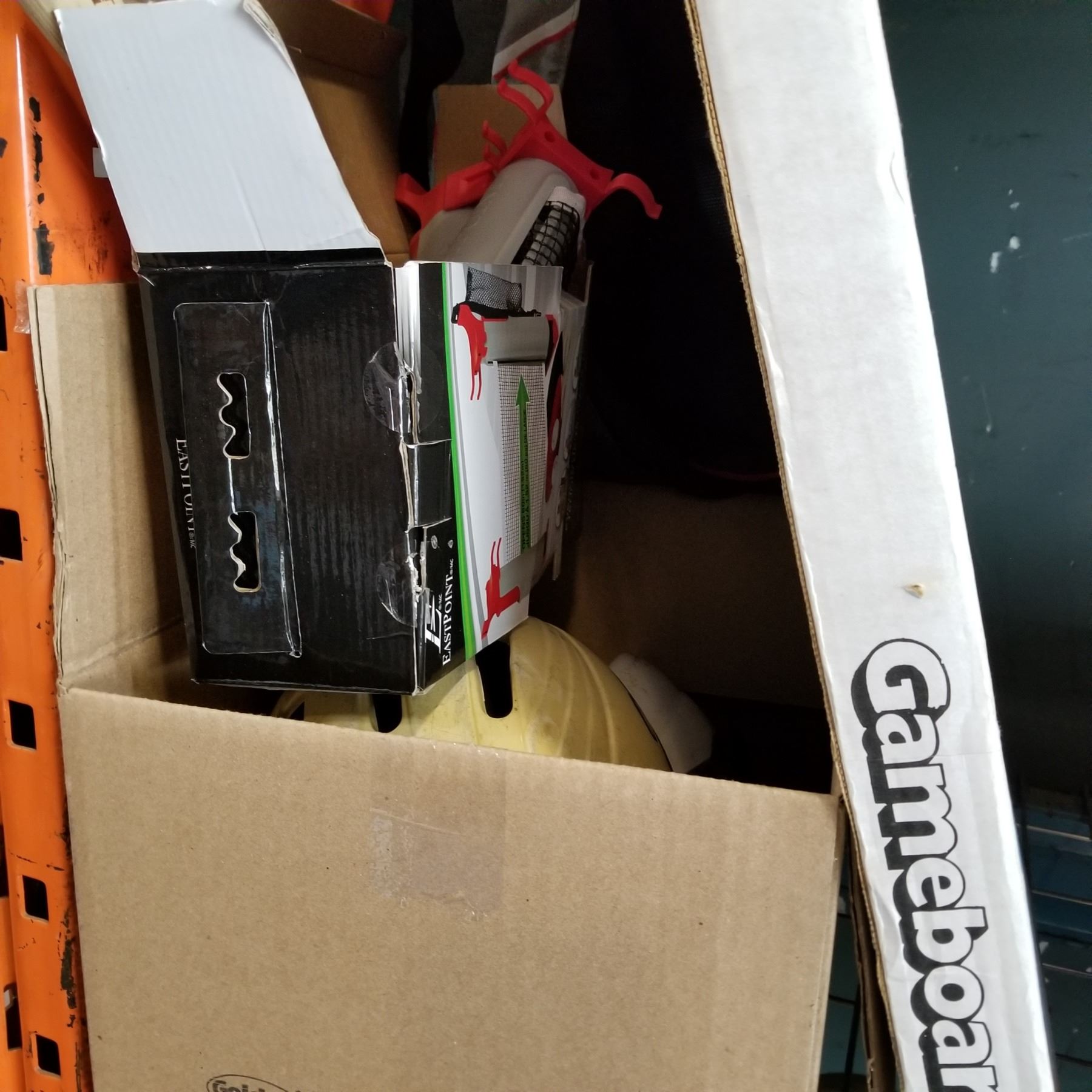 BOK OF BIKE HELMETS, PING PONG, CARRON GAME BOARD, TAYLOR MADE BAG