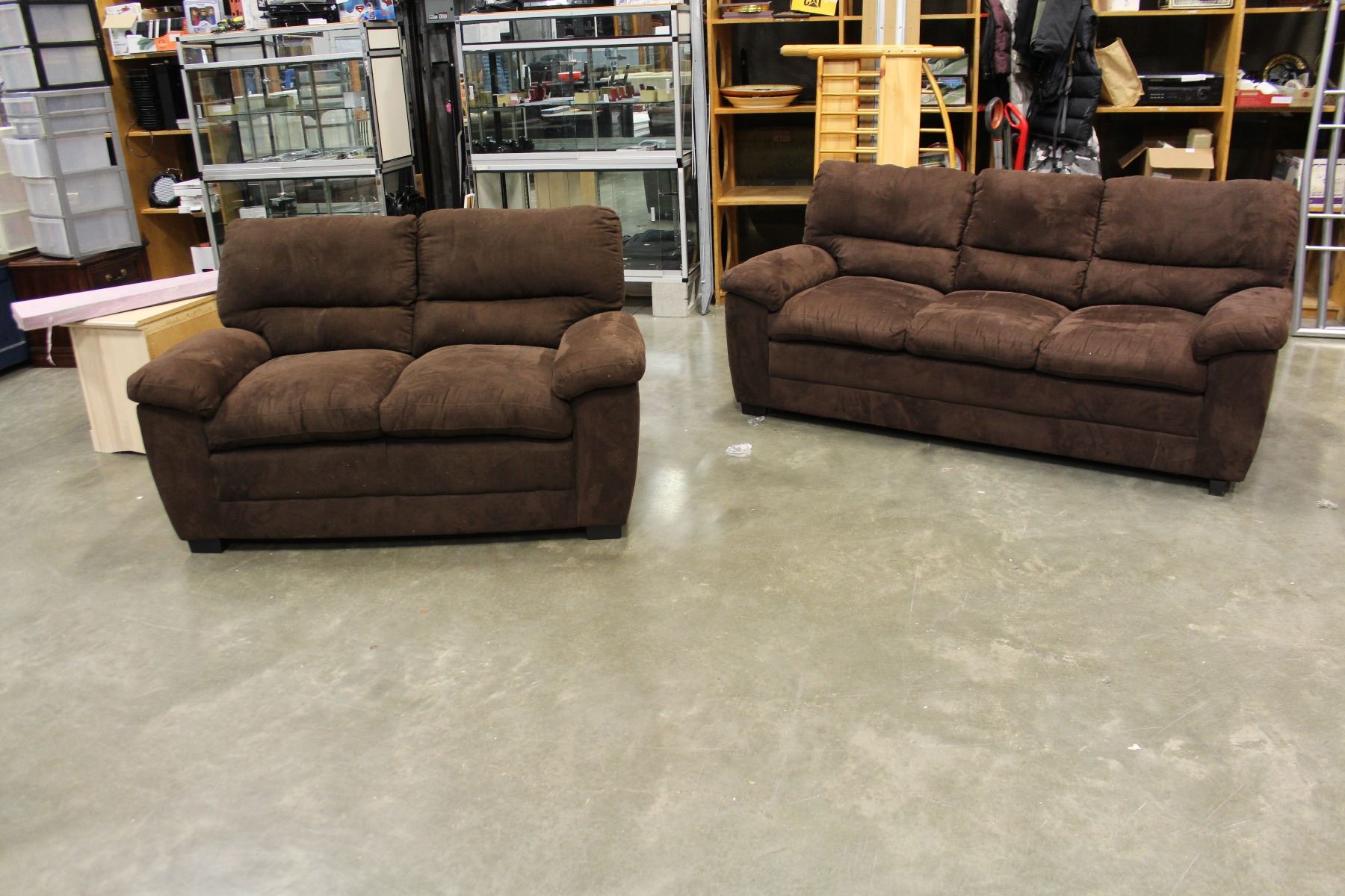 BORWN MICROFIBER SOFA AND LOVESEAT