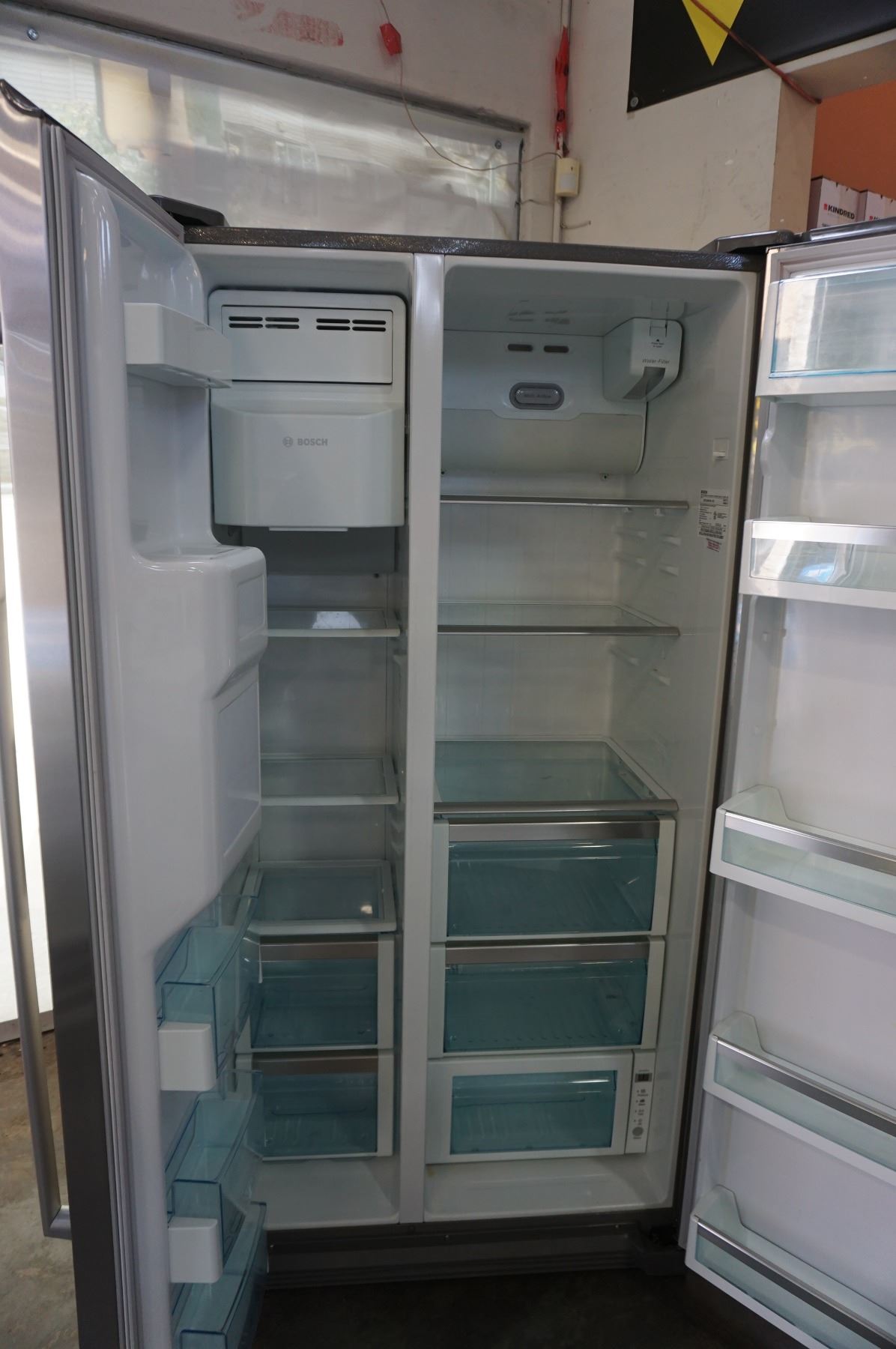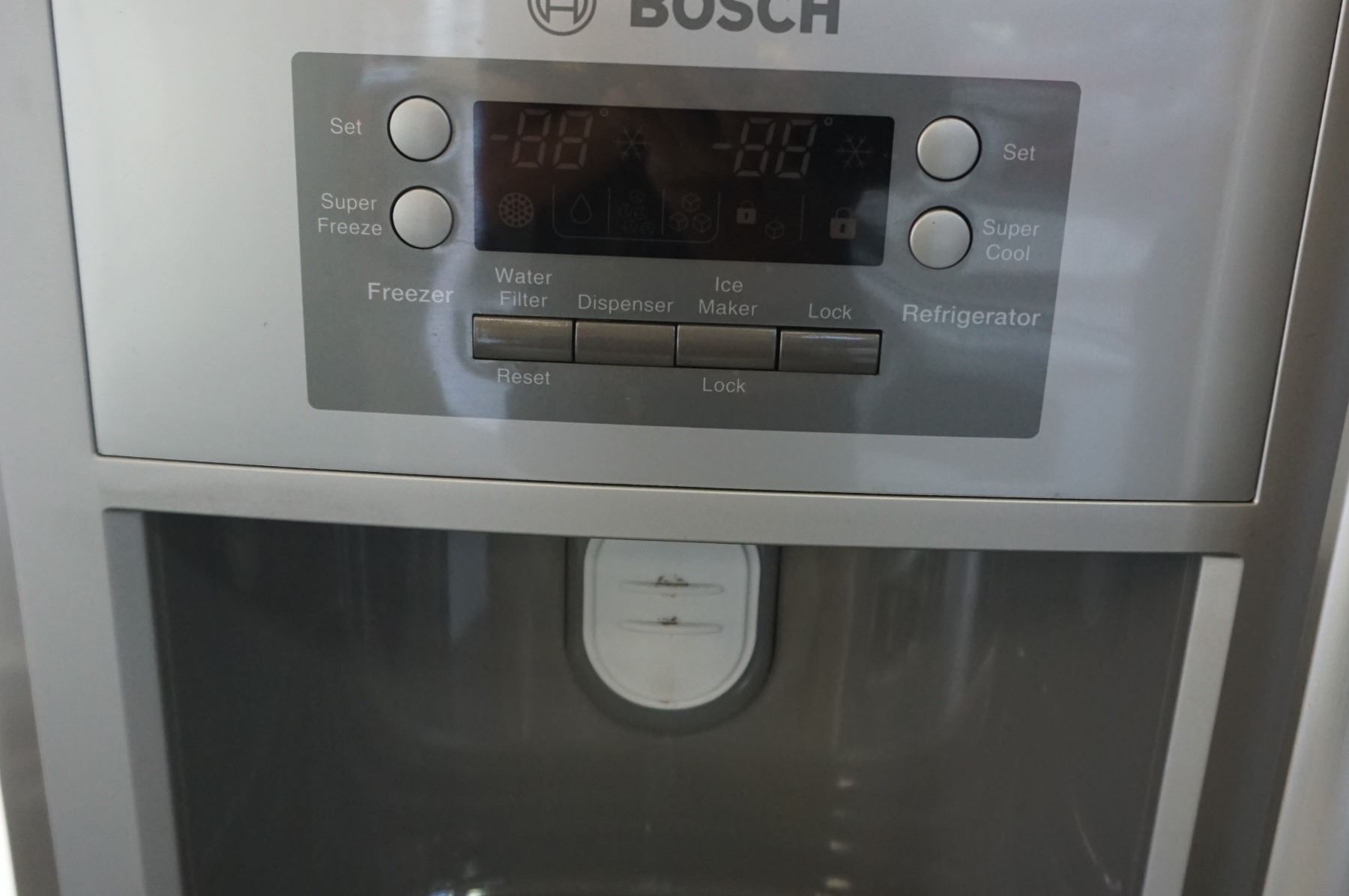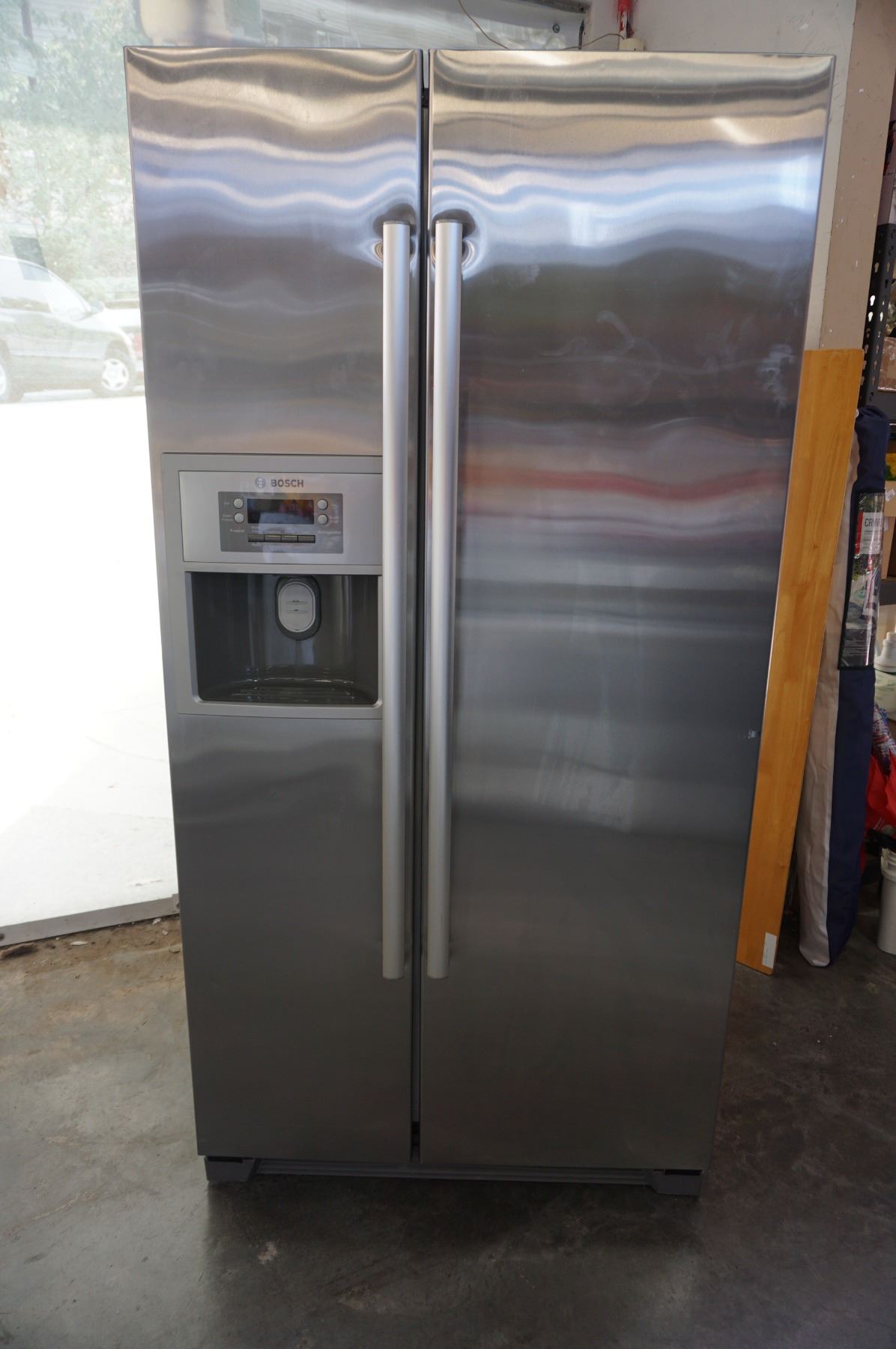 BOSCH STAINLESS 36 INCH SIDE BY SIDE REFRIDGERATOR WITH FREEZER, TESTED AND WORKING GUARANTEED