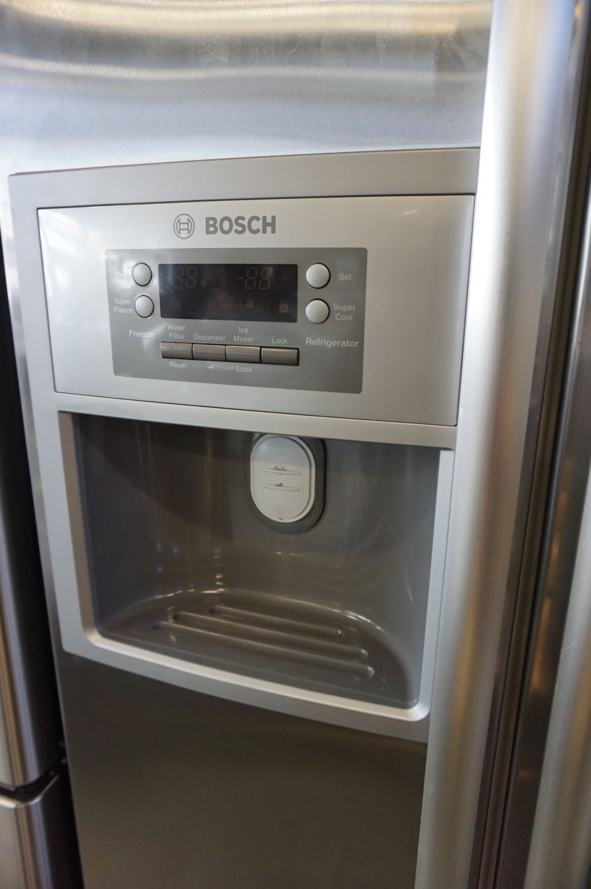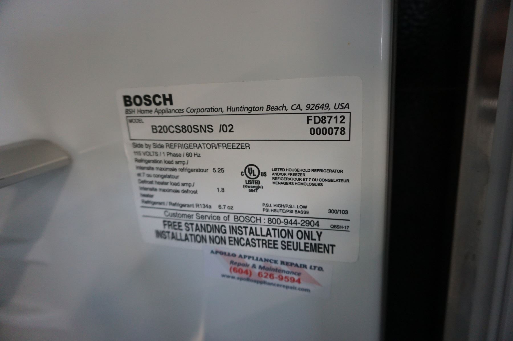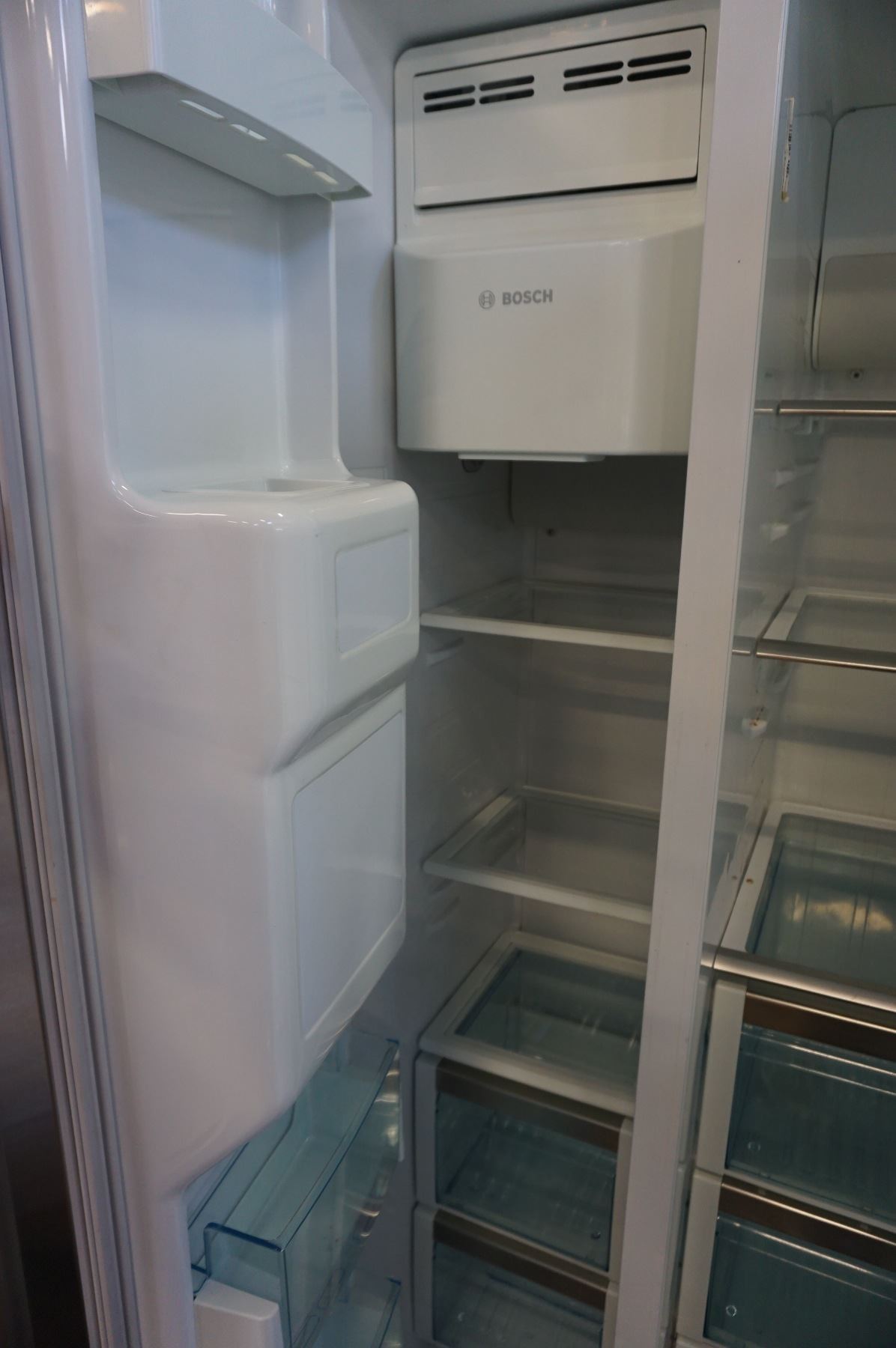 BOSCH STAINLESS 36 INCH SIDE BY SIDE REFRIDGERATOR WITH FREEZER, TESTED AND WORKING GUARANTEED