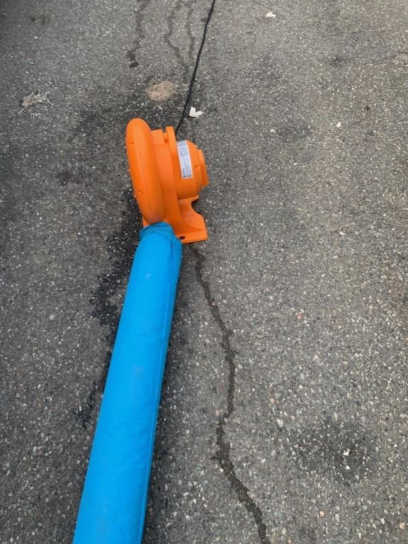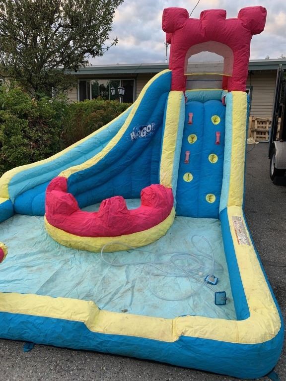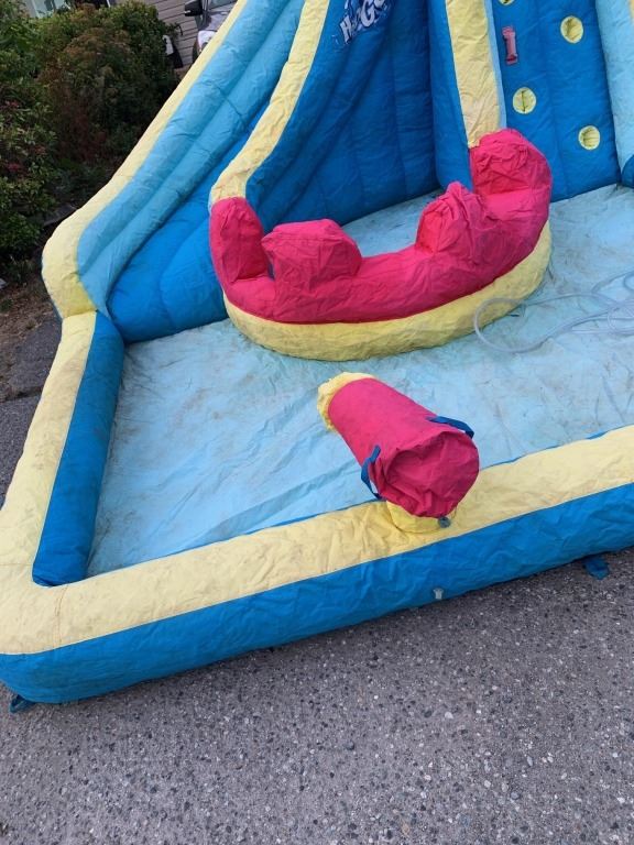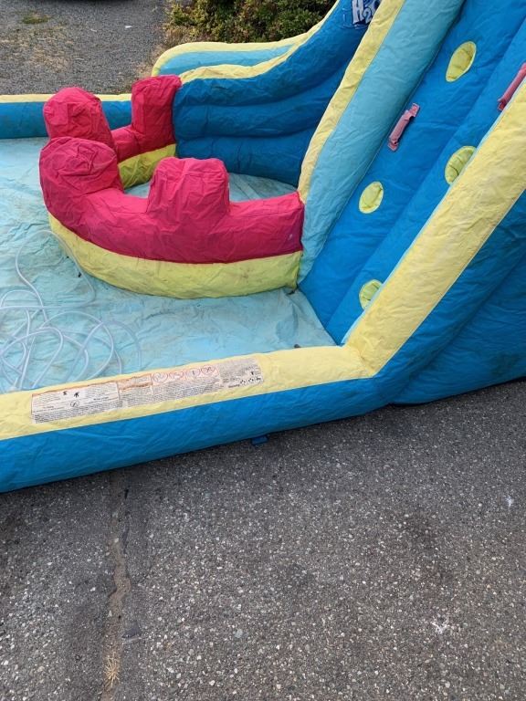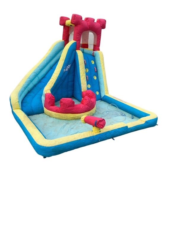 BOUNCY CASTLE WITH SLIDE, SPRINKLER HOSE WITH PUMP