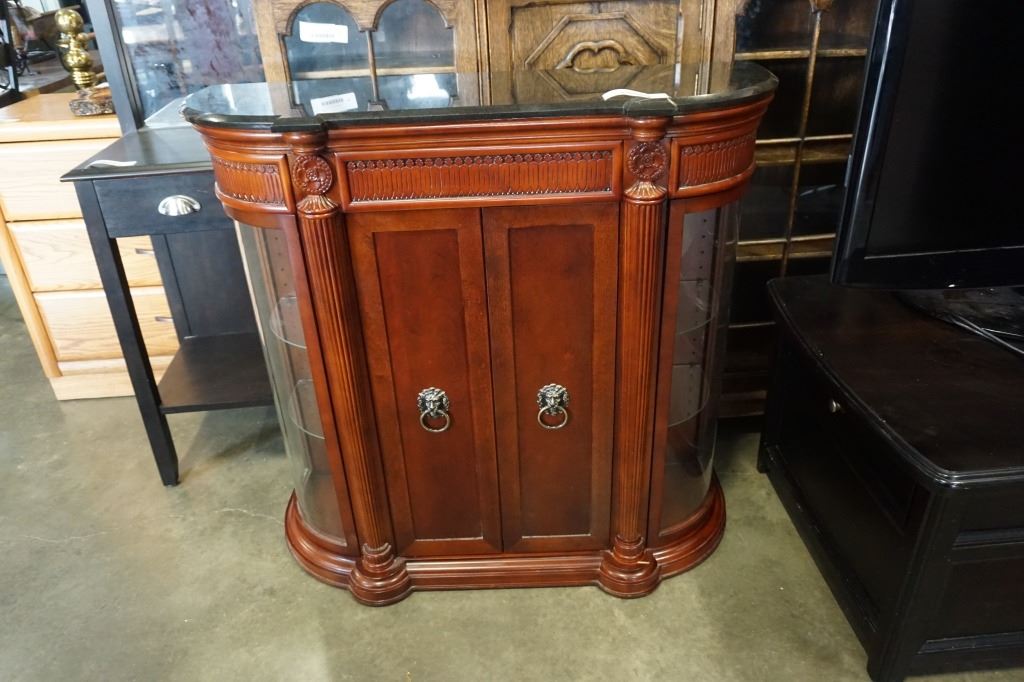 BOWED GLASS STONE TOP DISPLAY CABINET