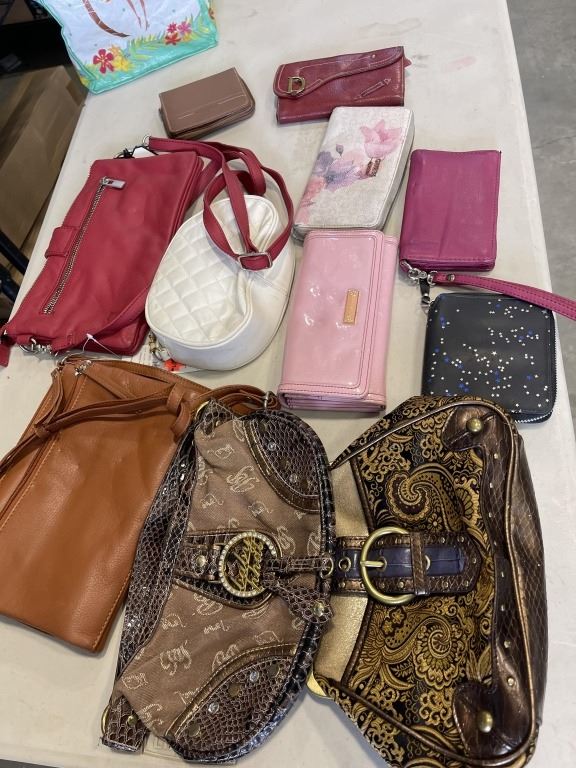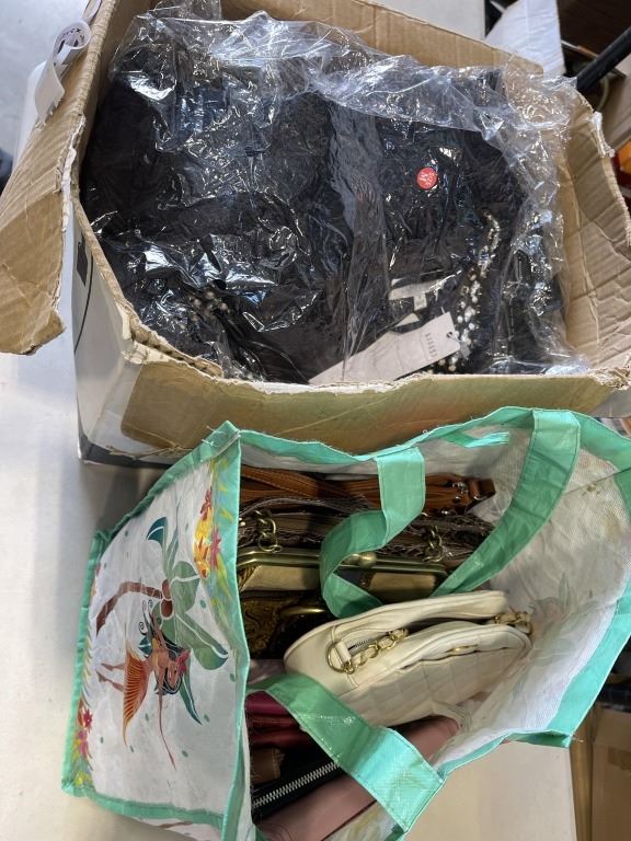 BOX AND BAG OF LADIES PURSES AND CLOTHING