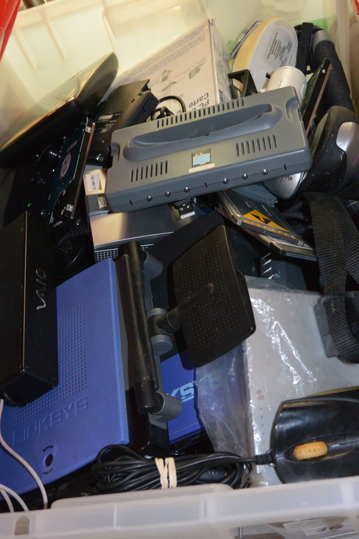 BOX AND TOTE OF COMPUTER ACCESSORIES AND PARTS