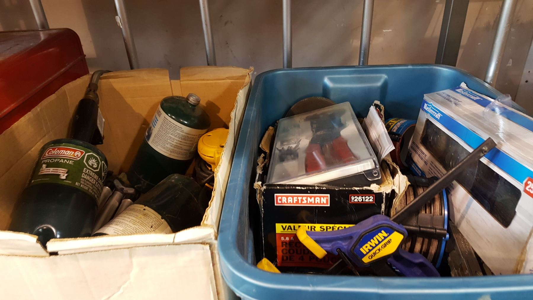 BOX AND TOTE SOF SHOP SUPPLIES, PROPANE BOTTLE, AND HEATERS